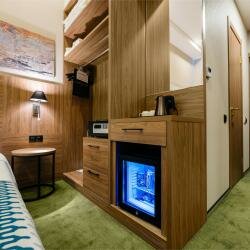 «Комфорт+» подходит как для семьи с детьми так и для чисто мужской или женской компании, 23м2. Есть: Wi-Fi, ТВ, холодильник, кондиционер, санузел c душем, шкаф, балкон. Двуспальная кровать (2 односпальные кровати) + кровать с доп. выдвижным матрасом.