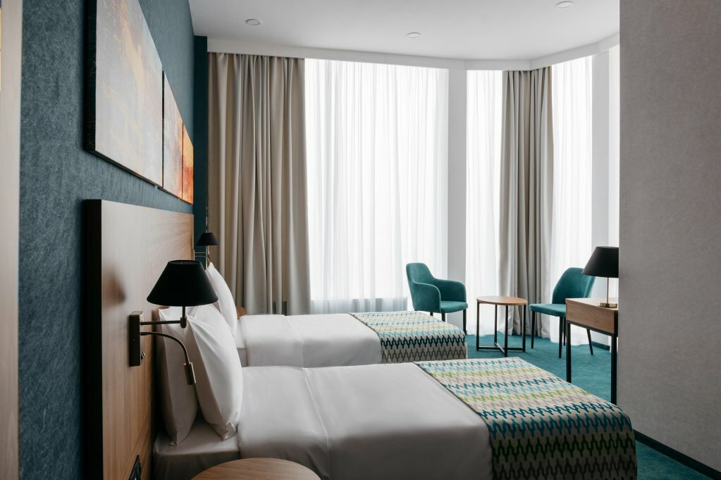 Очень приятный отель. Номер комфортный, внутри стильный дизайн. Чисто, относительно тихо, вежливый персонал. Ресторан в отеле очень понравился. Приятный интерьер и вкусно.