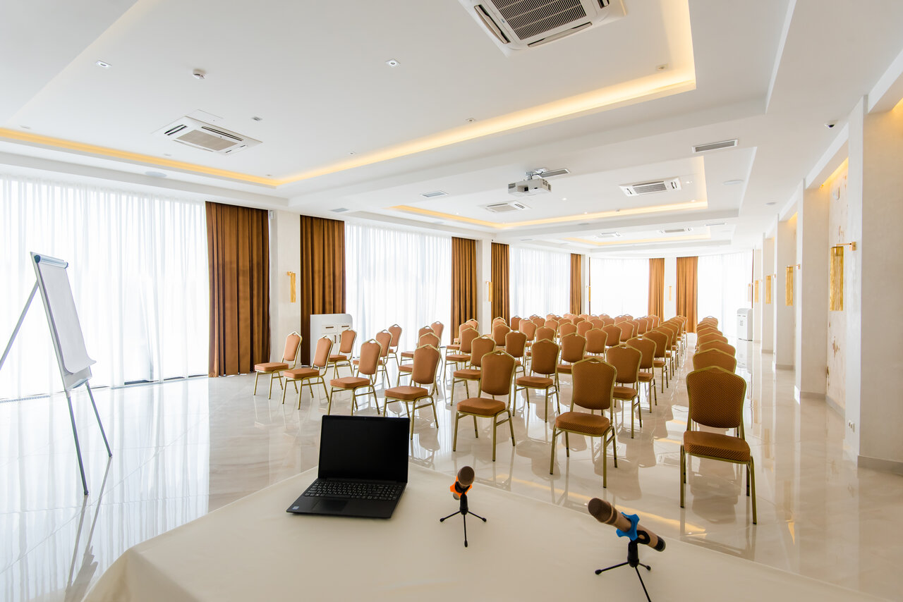Отличный отель — номера большие, чистые, новые, всё работает. Конференц-зал тоже оборудован всем необходимым. Очень вежливый и доброжелательный персонал, помогают быстро, четко. Ресторан — очень хорошая кухня, вкусно, красивая подача. Впечатление подпортила оплата вечером за ужин — стандартная байка про неработающий терминал. Пришлось платить переводом на карту. Будьте к этому готовы или носите наличные. Завтраки отличные — свежая выпечка и много блюд на выбор.