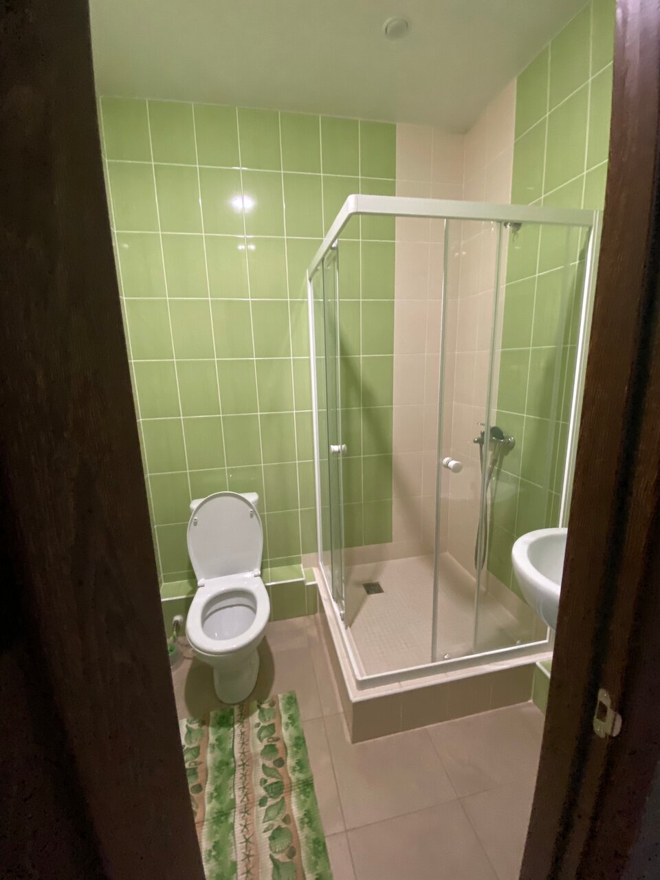 Чисто. Нет даже стаканов. В ванной — душевая кабина. В ней полок нет (шампунь, мыло, гель для душа и т.д. ставить некуда). В ванной также нет крючков, повесить полотенце и вещи некуда. В номере только одна розетка, в комнате.
