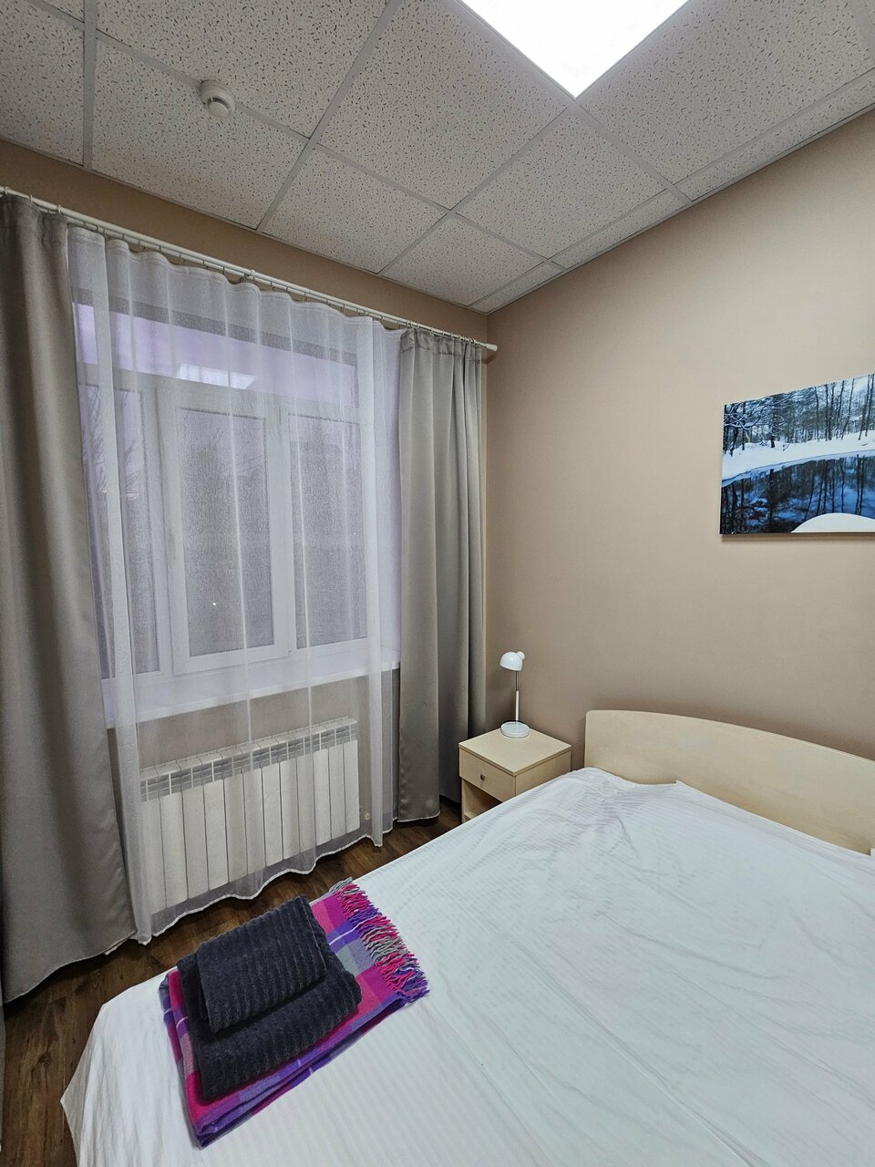 Нормальная цена 2000 р . Свежие полотенца, постельное. 2 курилки. Было относительно тихо, неудобств никто не доставлял, спал прекрасно на мягком матраце. Единственный минус — в душевой на полу были части волос чьи-то остались. Батареи зимой грели отлично. Тут же рядом столовая есть, на талон от гостиницы простенький завтрак в столовой. В целом то что нужно переночевать, без излишеств.
