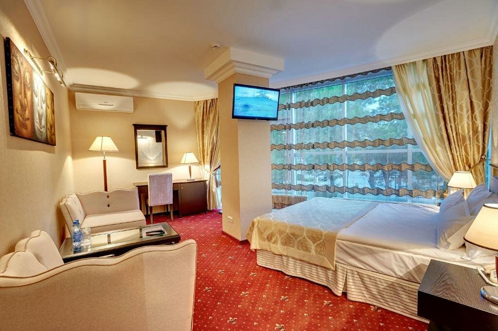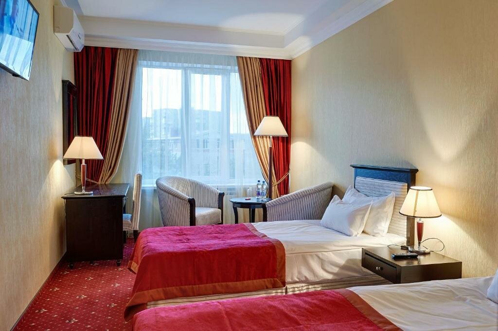 Удобства: ресторан, кафе, бар, сауна, баня, салон красоты, конференц-зал, бесплатная парковка. До центра — менее 5 км, рядом парк.