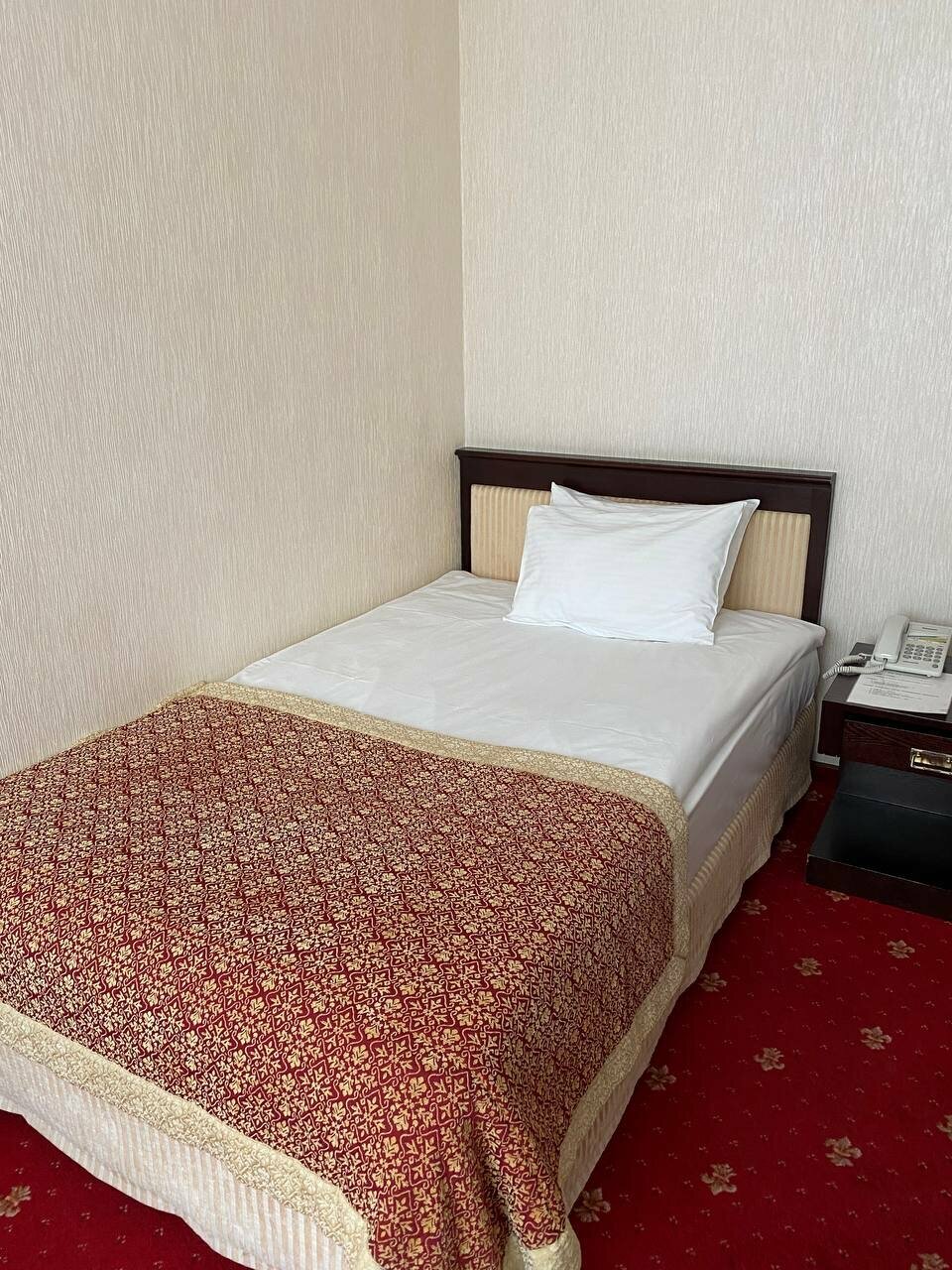 Очень достойный ремонт, только запах специфический, окно держала открытым постоянно, столовых приборов в номере ни одного, салфеток тоже пара штук . Завтрак утром не предмет изобилия, но скромно каша, яичница, сосиски, немного сухофруктов, яблочки чай с лимоном. В обед заказали по миске супа, персонал немного был в замешательстве о чем это я. Но потом решили , что это будет первое с тефтелей из баранины. Возможно что-то национальное. Хочу добавить, что уборка номера это на 10 звёзд. Не пылинки , не соринки как в музее.