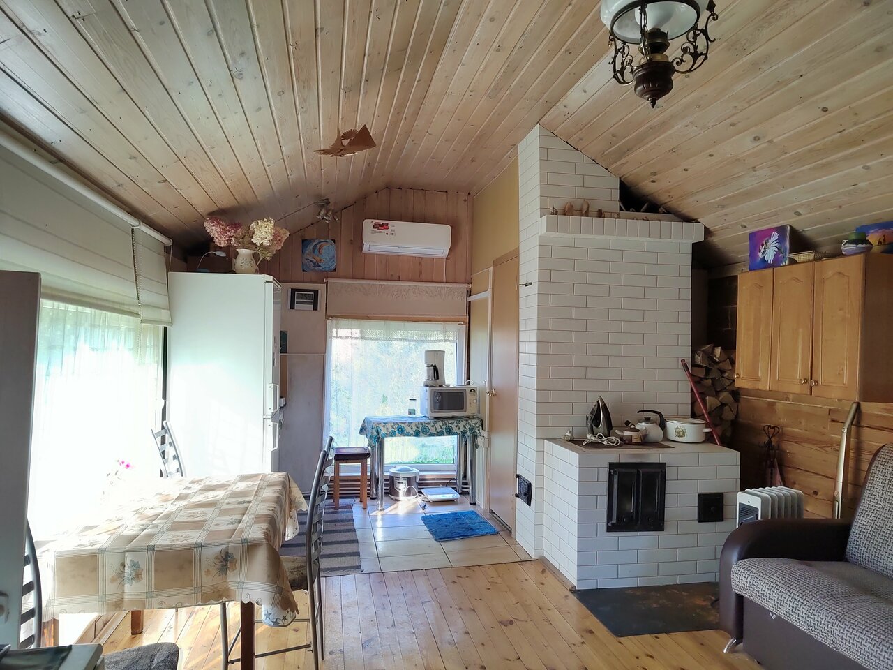 Домик в скандинавском стиле, с шикаренейшей тёплой печью. Очень уютно и очень не хочется от сюда уезжать. Гостипеимная хозяйка.