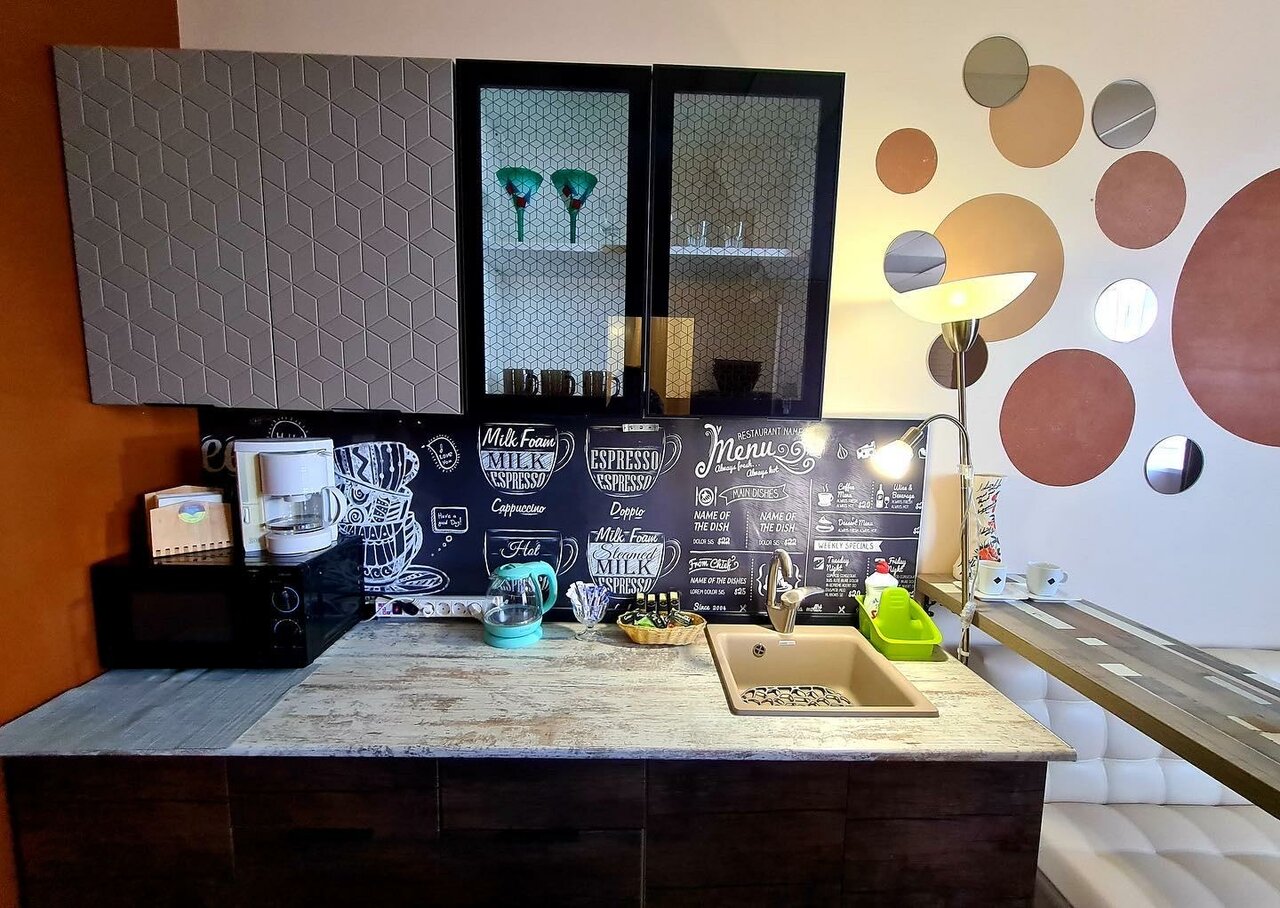 «Мансарда» идеально для пары или небольшой семьи. 31м2. В комнате: Wi-Fi, ТВ, холодильник, кондиционер, ванная комната с окном (душевая кабина, туалет и биде), большой балкон. Комфортная двуспальная кровать и угловой диван со спальной функцией.