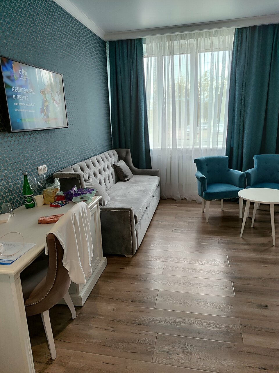 Лучший отель в Ступино! Отличное место! Безумно благодарен, что смогли быстро заселить и подобрали отличный номер в тихом месте. Номер был отличный: просторный, чистый, кровать очень удобная, просторная ванная комната. По действиям персонала можно писать учебник по сервису, просто браво и снимаю шляпу! Приезжая в следующий раз в Ступино, обязательно будем заселяться именно сюда! Соотношение цена качество очень приятно удивило! Персонал во всех просьбах пошел на встречу и создал прекрасные условия для отдыха. Еще раз большое спасибо!