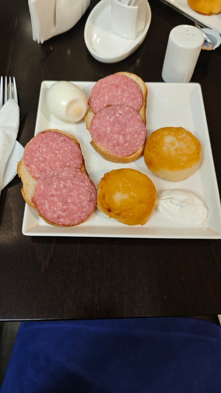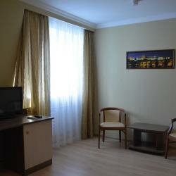 Отель на окраине города. На первом этаже номера хорошие. На 4 этаже похуже. 2 и 3 этажи в здании занимают разные организации. Завтраки однообразные: сэндвич, 2 сырника, йогурт, 2 отварных яйца, чай или кофе.