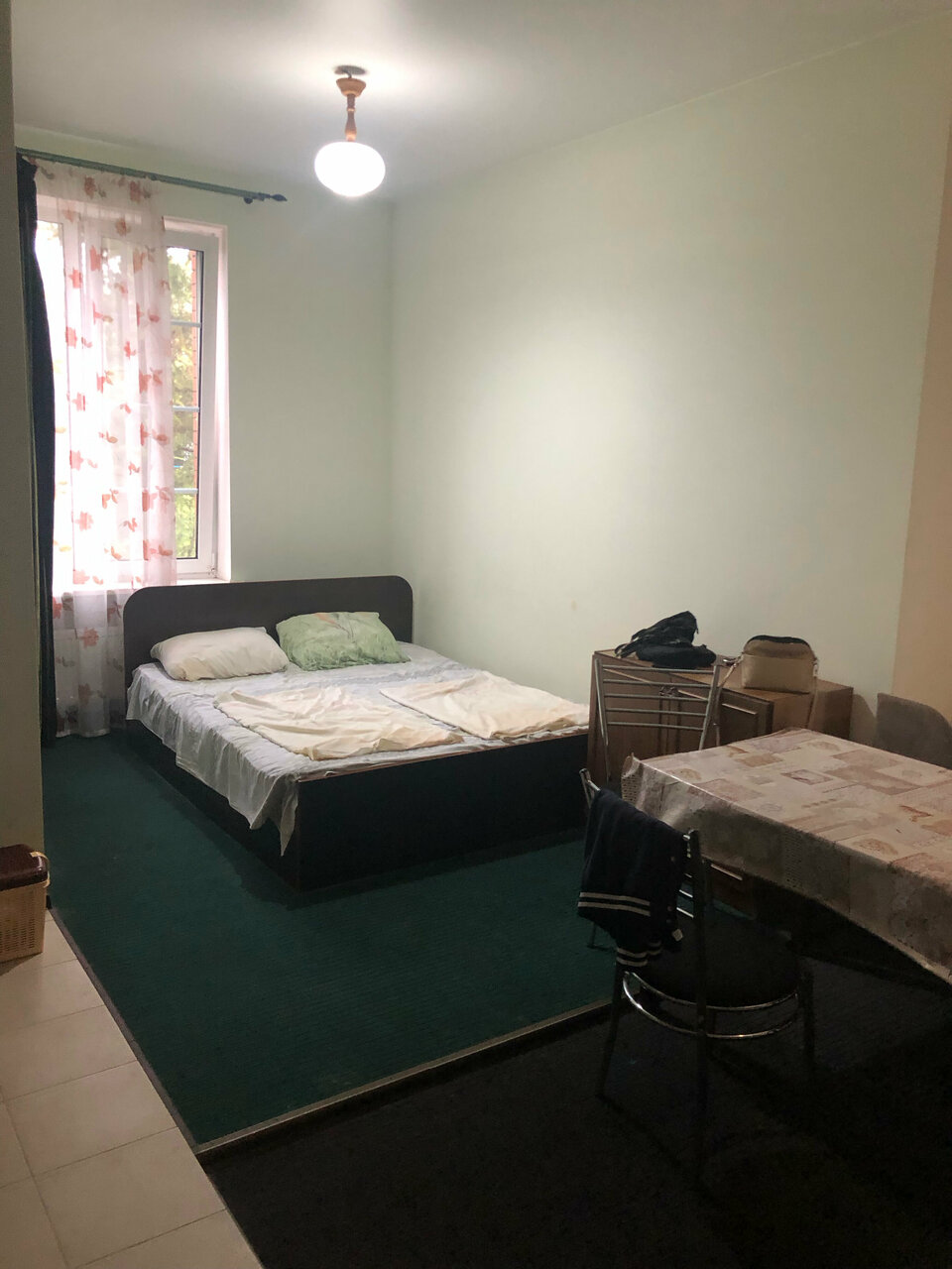 Подвальное помещение, старое кресло раскладушка как будто с помойки, постельное бельё, старое, полотенца тоже все старые! Температура в подвале чуть тёплая чтобы не замёрзли, в душе и в туалете, не мыли ни разу все стены и двери в разводах, не посоветую даже врагу!!!!!