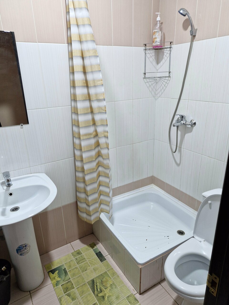Ночевали одну ночь, кровати нормальные, постельное белье свежее и полотенца… Так ничего вроде, но надо сменить в ванне штору, и поменять сантехнику…