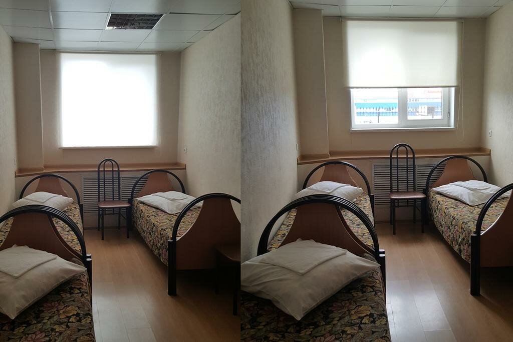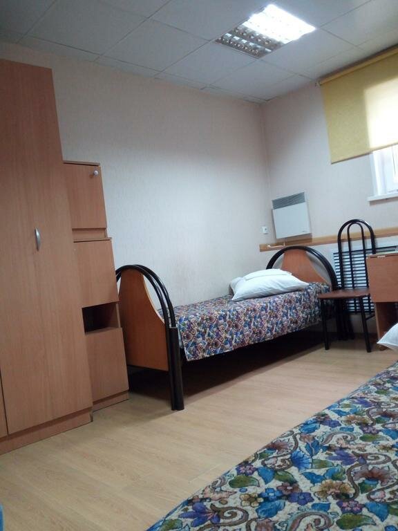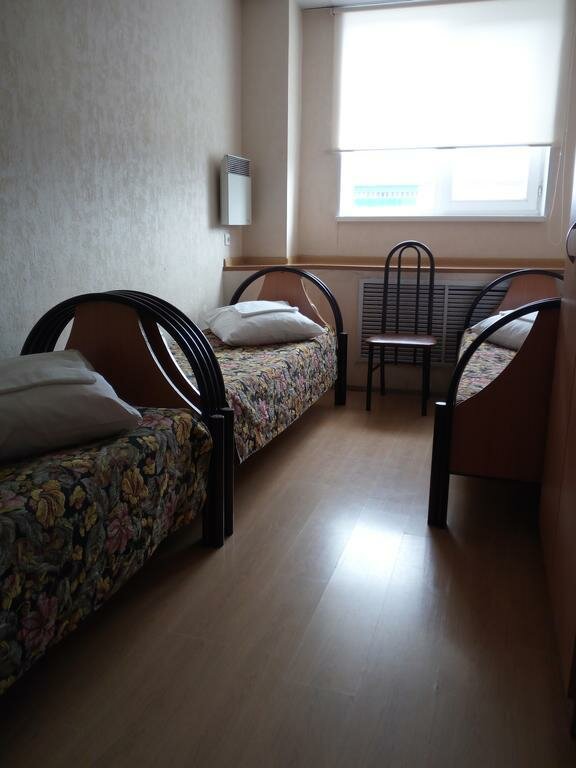 Приют дальнобойщика 🙂 Белье чистое, в номерах убрано. Все удобства — на этажах. В общих туалетах чисто, видно, что регулярно убирают. Есть общая кухня. Мебель уставшая. Звукоизоляции нет, ночью храп раздавался со всех сторон (буквально). В общем, если вы стеснены в средствах или непритязательны — то вполне себе рабочий вариант на одну ночь.