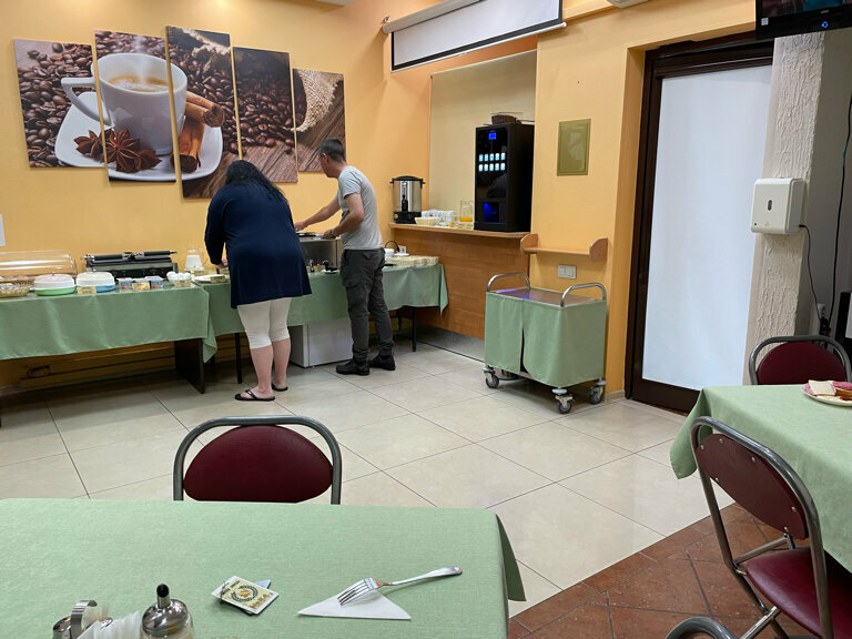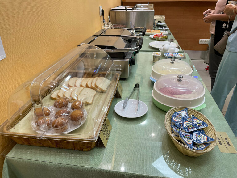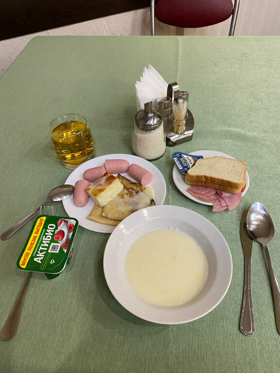 Я довольна отелем. У меня был бизнес-стандарт. Все самое необходимое есть. Посуда. Пятерочка через 100 метров. Остановка тоже метров через 100. Центр города. Жила 3 дня. Рекомендую. Еду купила в пятерке. Мой завтрак перед вами)