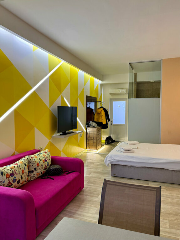 Останавливались в этом отеле в конце августа. Конечно же привлекли современные стильные номера с панорамными окнами, хоть цена и на порядок выше номеров поблизости. Номера действительно соответствуют заявленным на фото. Расположение тоже порадовало близостью к набережной. Из минусов хочется отметить и пожелать собственникам следить за номерами и поддерживать соответствующий внешний вид. От износа никуда не деться , но всеже очень портят впечатление немытые двери, рваные стулья, пошарпанный линолеум и тд.