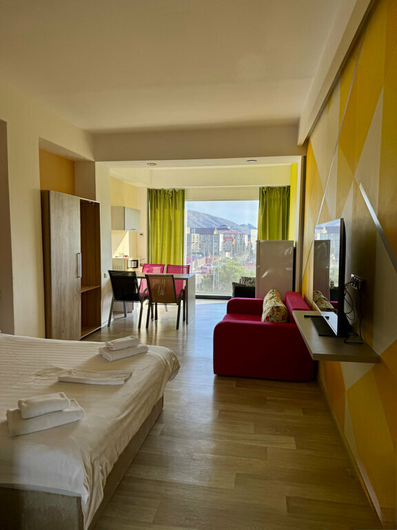 Замечательный отель! Современные номера,с видом на гору.Уборка проводилась регулярно.Вежливый и дружелюбный персонал.Холодильник,микроволновка,кондиционер,телевизор,фен в номере,свой сан узел.Завтраки вкусные,чувствуется что приготовлено с душой.С радостью приеду ещё)