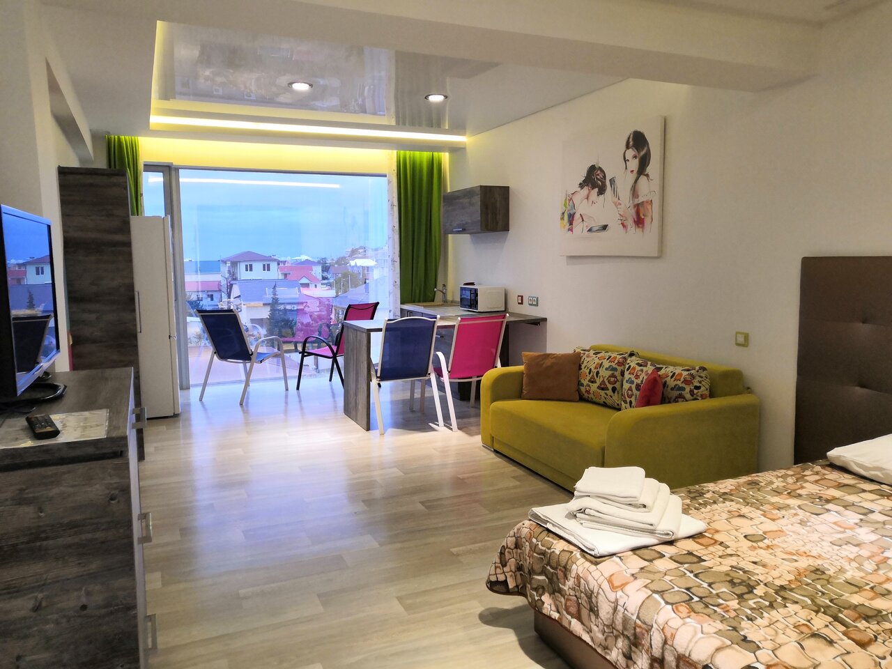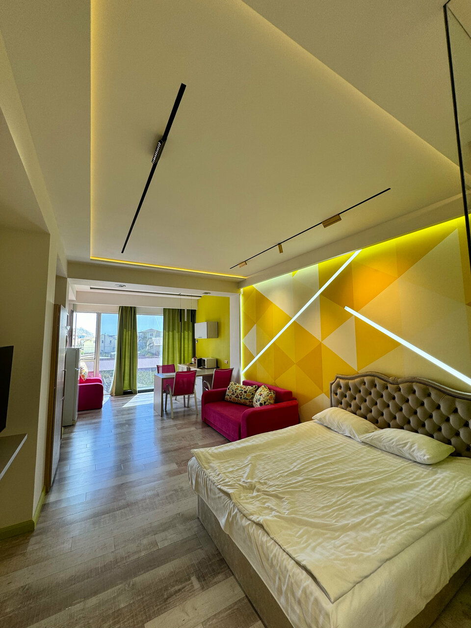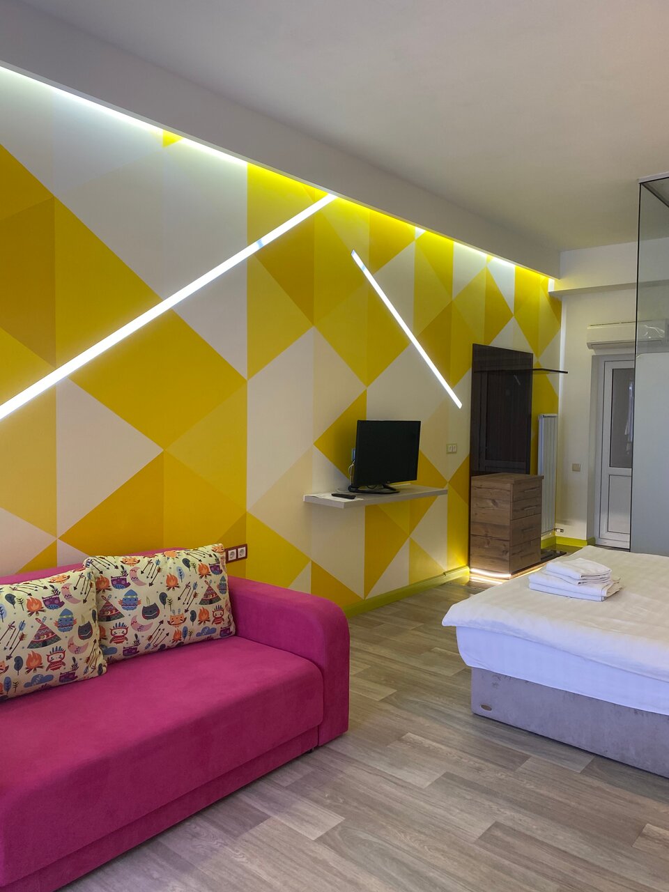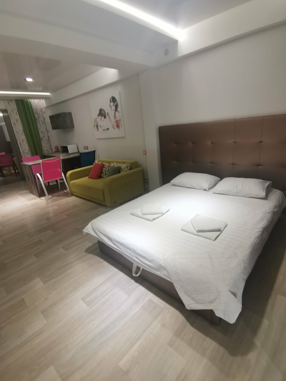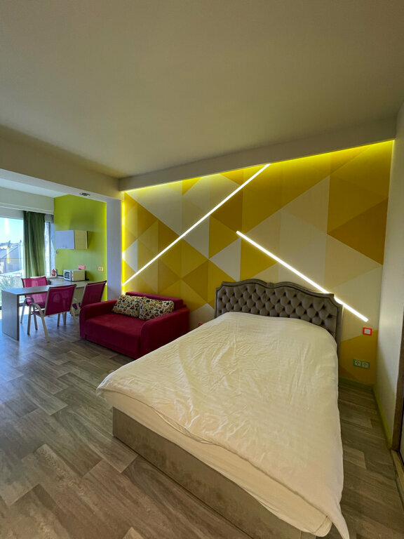 Яркий современный интерьер;Шикарные виды из панорамных окон;Кондиционер;Доступ в интернет через Wi-Fi бесплатно;SMART-телевизор;Холодильник;Электрический чайник;Микроволновка;Горячая и холодная вода круглосуточно;Умягченная вода;Фен;Мин...