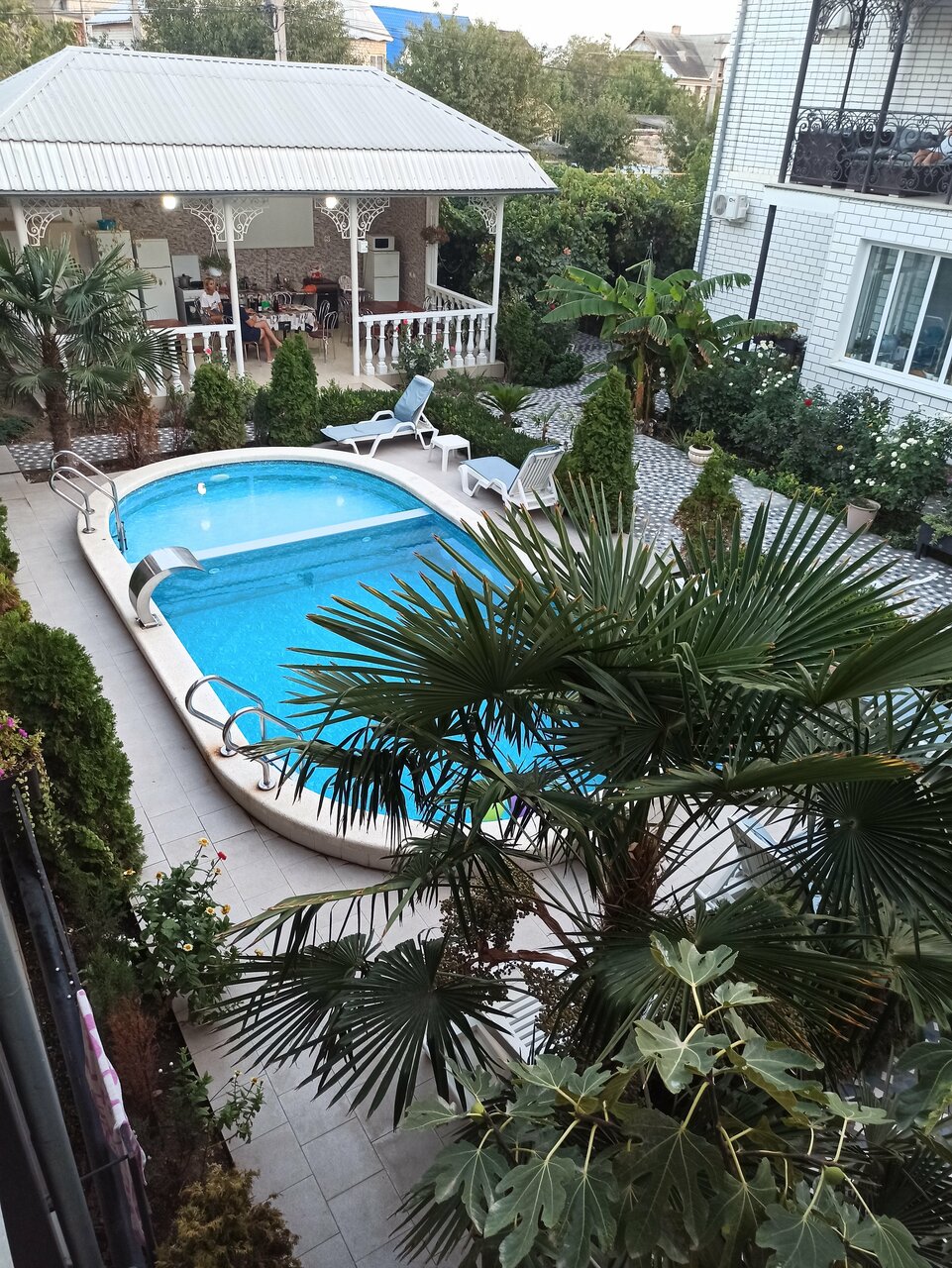 Отличное место для отдыха всей семьёй. Хорошие хозяева. Очень демократичные цены. Вкусная кухня.Бассейн. Свой бесплатный автобус до моря.