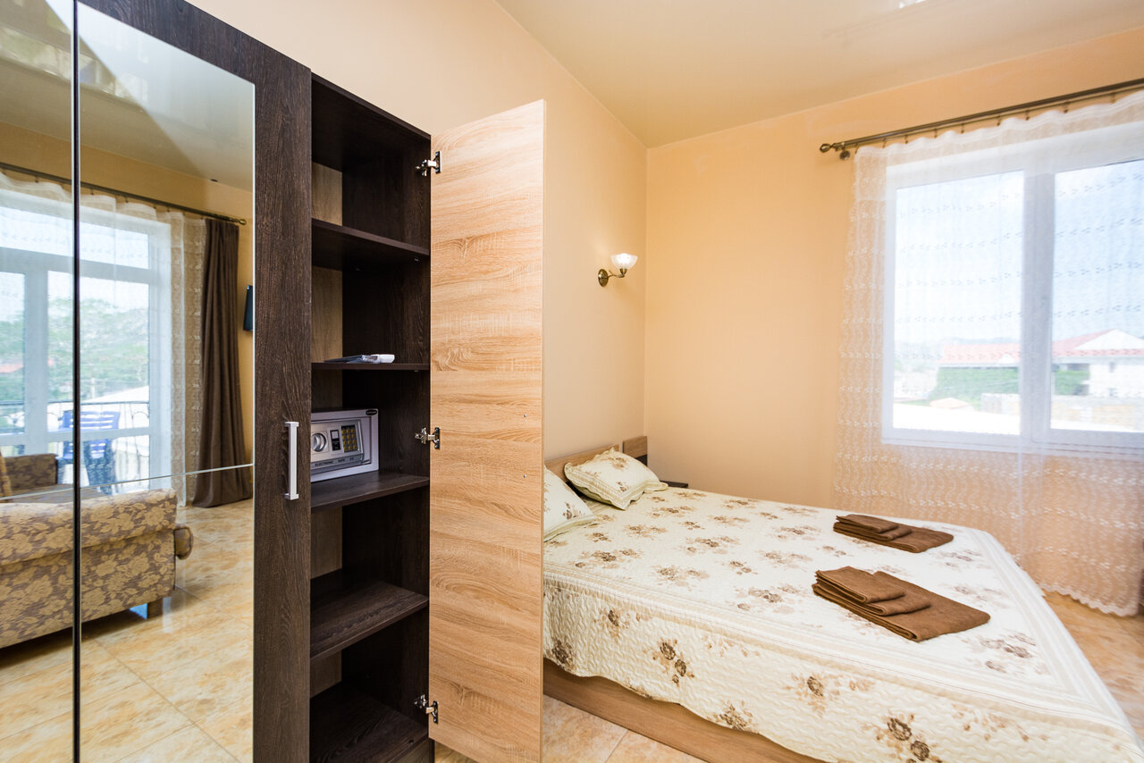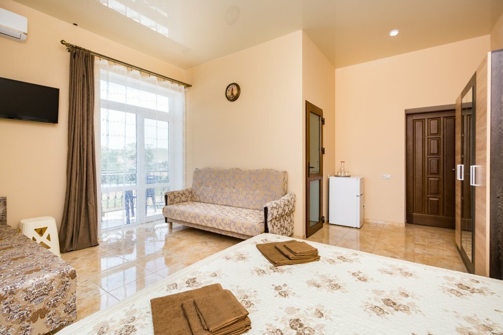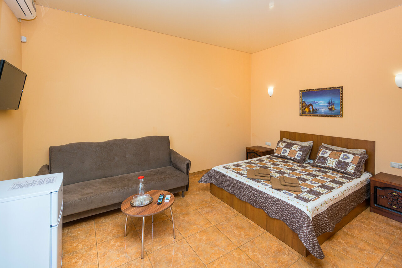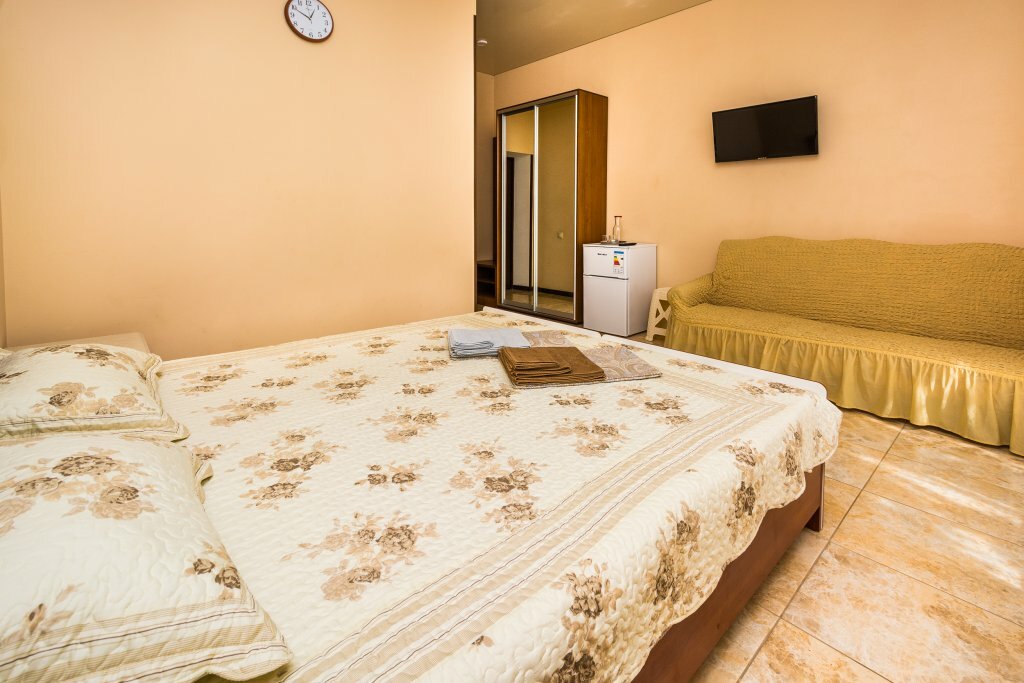 Отдыхал в Судаке в конце августа. Номер просторный и светлый, есть холодильник, телевизор, кондиционер и wi-fi. Всё понравилось.
