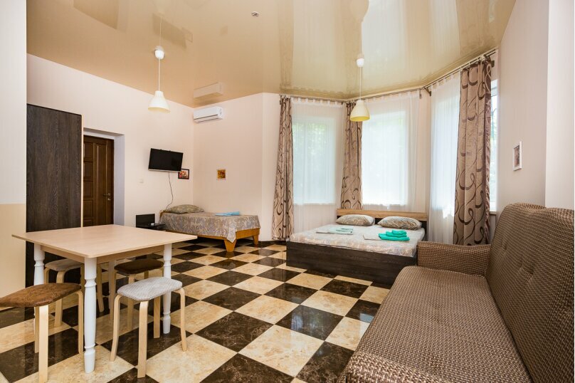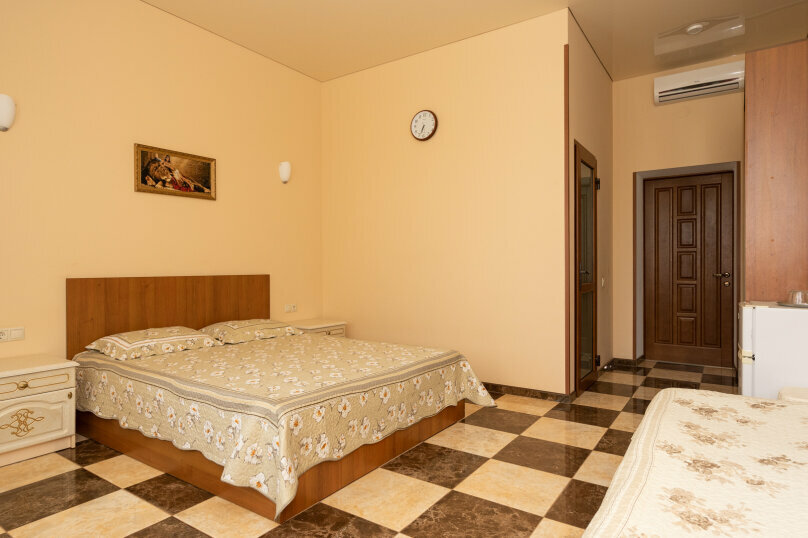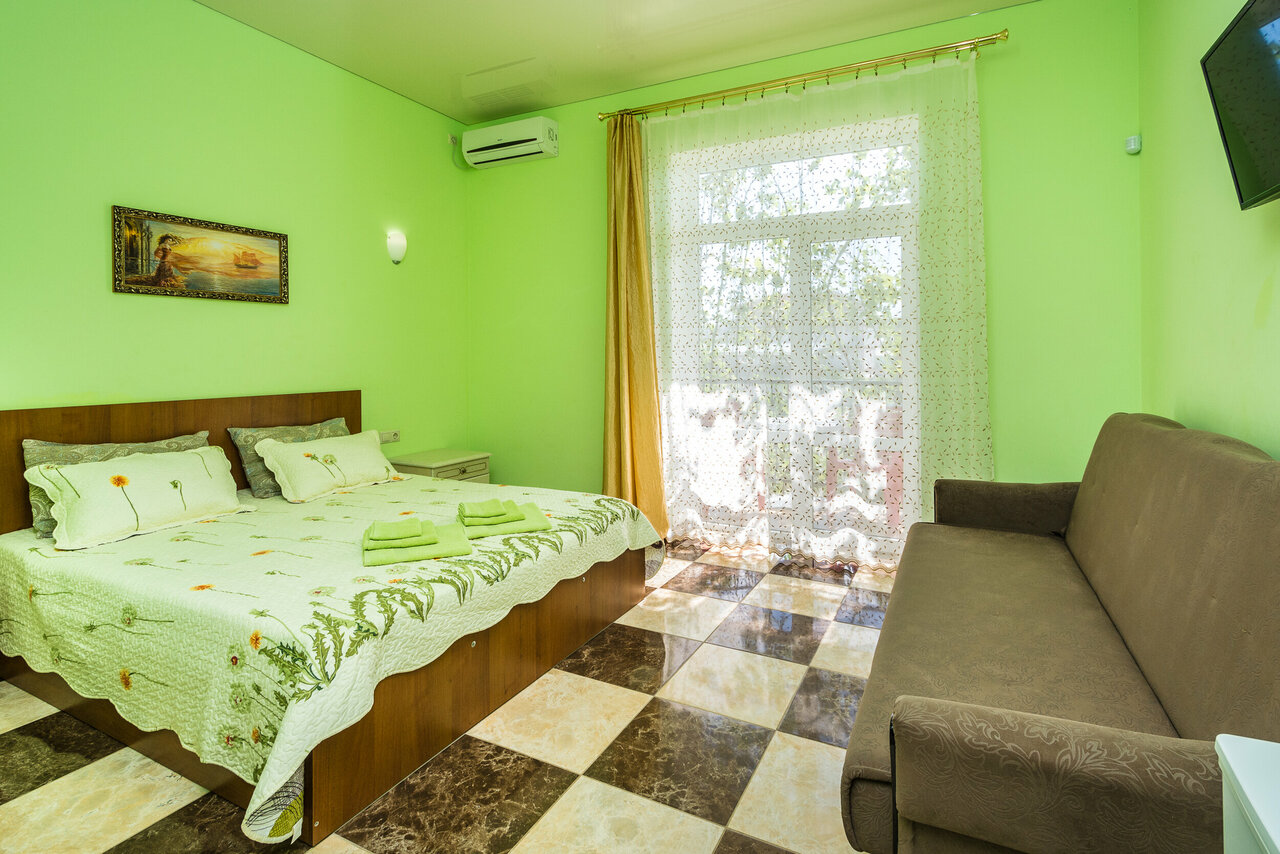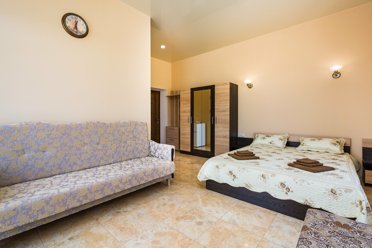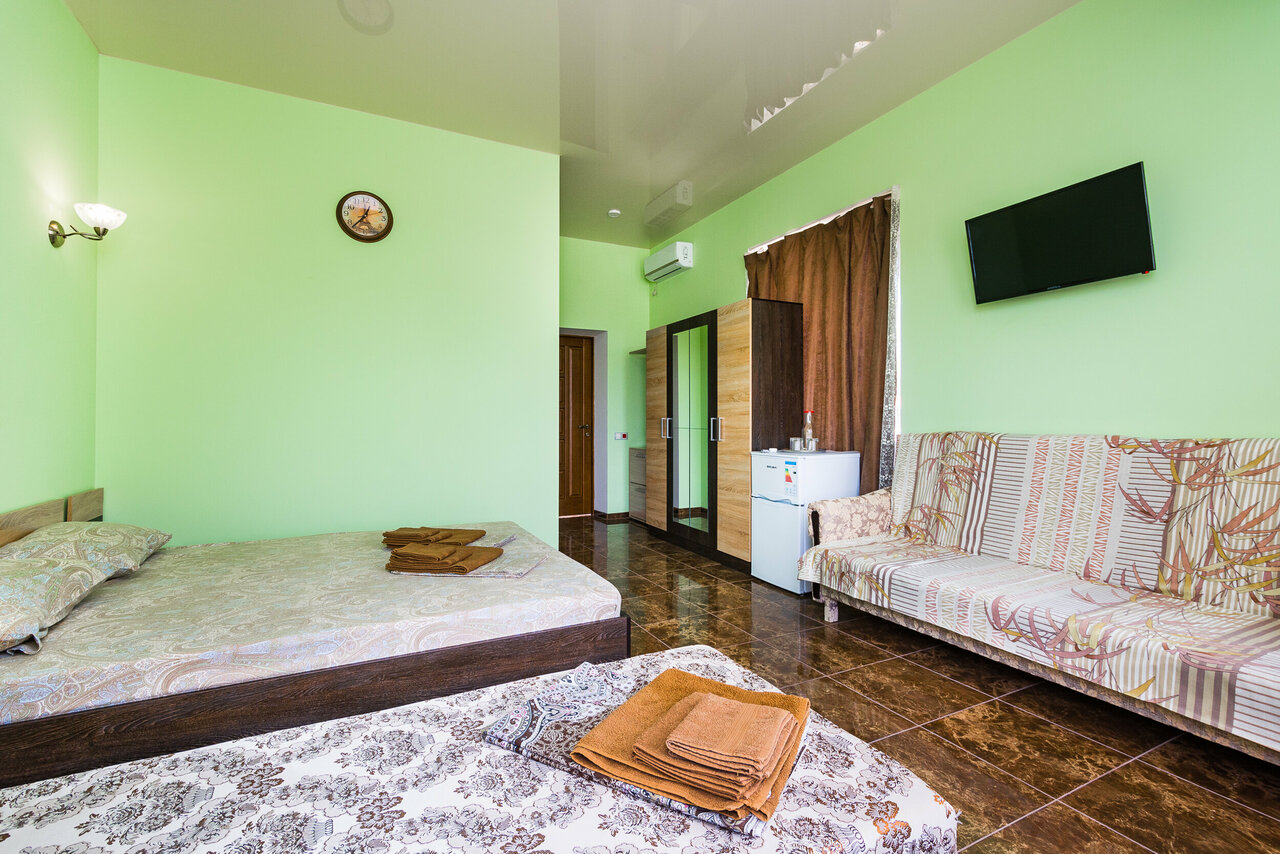 Отдыхал в Судаке в конце августа. Номер просторный и светлый, есть холодильник, телевизор, кондиционер и wi-fi. Всё понравилось.