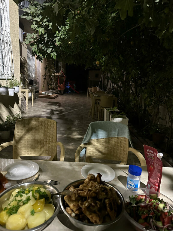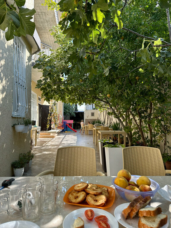 Отдыхали в июле 2024. Прекрасный гостевой дом — очень ухоженная территория во дворе! В тени инжира всегда приятно просто посидеть, перекусить или поиграть в настольные игры (их можно взять). Когда мы отдыхали — было много детей, был практически детский сад) Дети сами спрашивали можно пойду гулять? — и можно быть уверенным, что на огороженной территории в тени деревьев — с ними точно ничего не случится! Все необходимое есть: на общей кухне выдают индивидуальный комплект посуды, очень удобно. Хозяева — прекрасные люди, все расскажут и покажут, спросят как дела) Рядом магазины, кафе. В-общем, все прекрасно! Из минусов — пыльная дорога в целом в этом районе, но это мелочи.