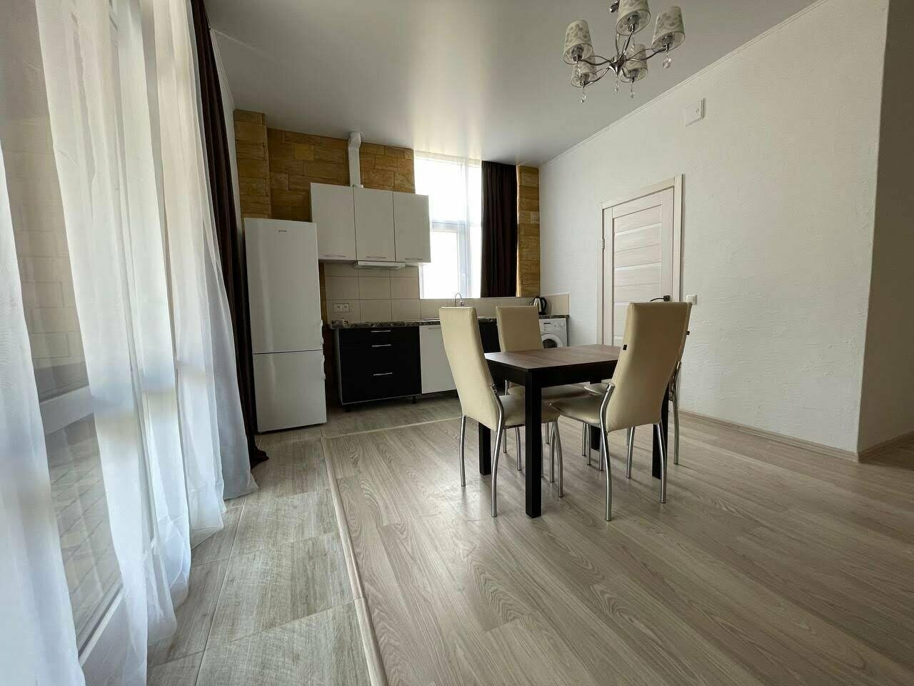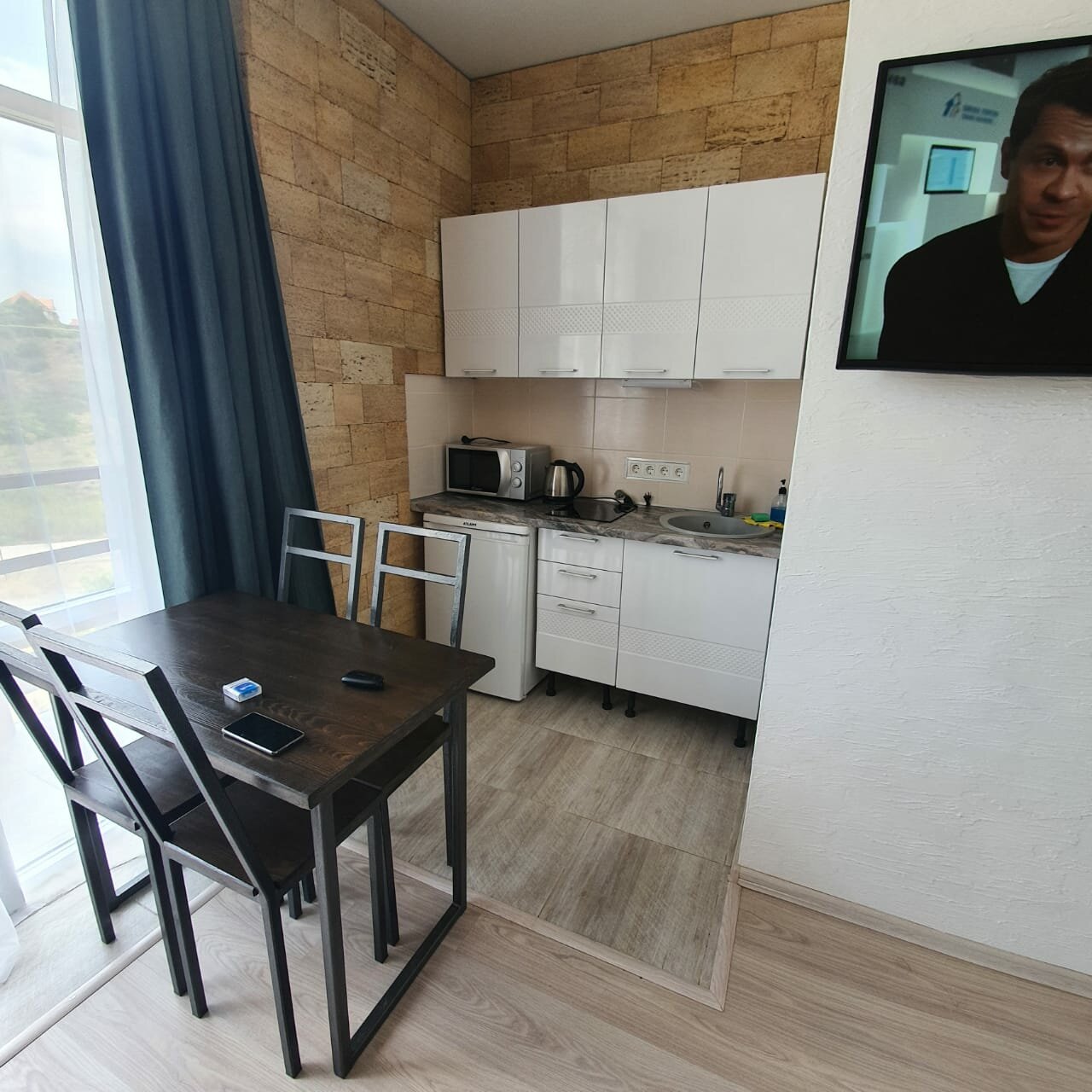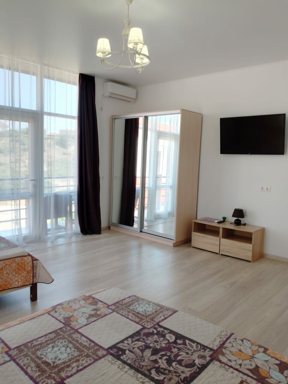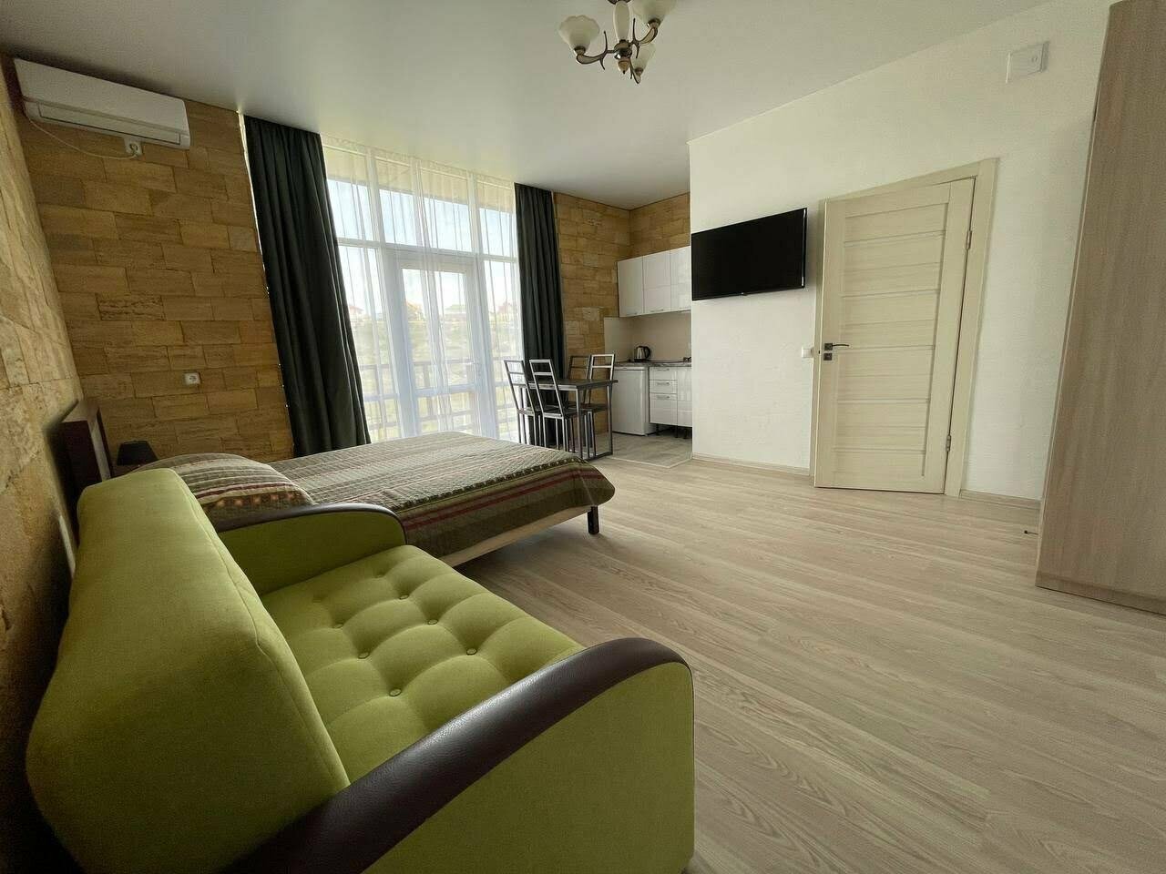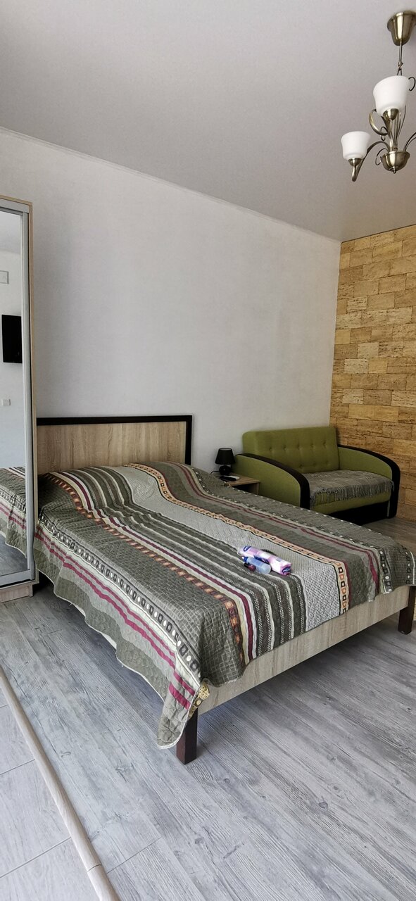 Всё очень понравилось, хорошие хозяева, сразу предложили бутыль питьевой воды всего за 100 руб. Номера новые с высокими потолками, просторные. Белье и полотенца выдали. Телевизор смарт тв, с помощью сервиса wink смотрели любые каналы, а на ivi -смотрели вечерами фильмы. В номере своя кухня с индукционной плитой. Нам очень не хватало микроволновки. Просто ужасно пытаться разогреть готовую пиццу или пирожки на сковороде. Надеюсь, номера оснастят микроволновками. Балл снижать не буду, впечатления за неделю проживания приятные.