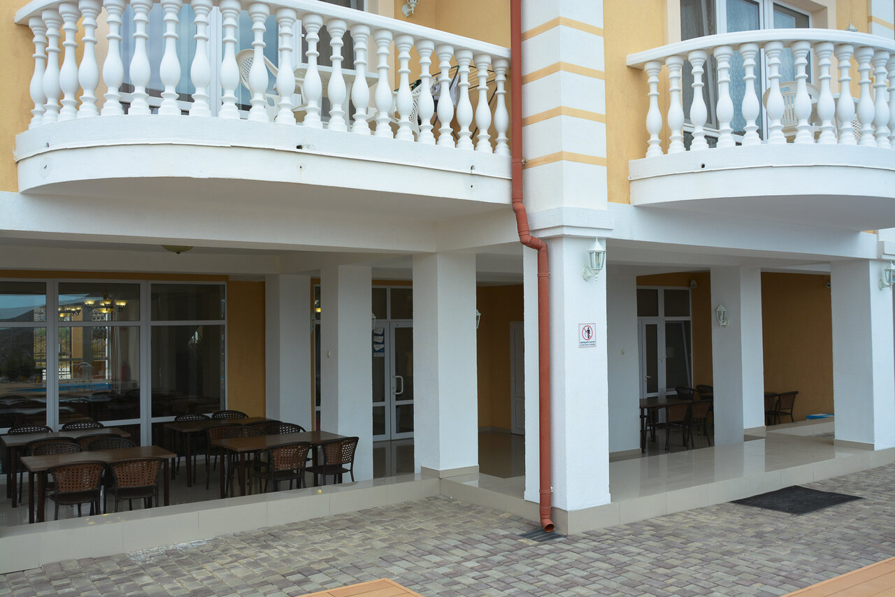 Номера просторные,с хорошим и свежим ремонтом,с большим балконом,со всеми удобствами, находится гостевой дом в 10-ти минутах ходьбы до моря прогулочным шагом,готовят вкусно,цены очень демократичные,персонал вежливый, всегда помогут и подскажут, в номере проводят уборку своевременно,бассейн с подогревом,всё на высоте!