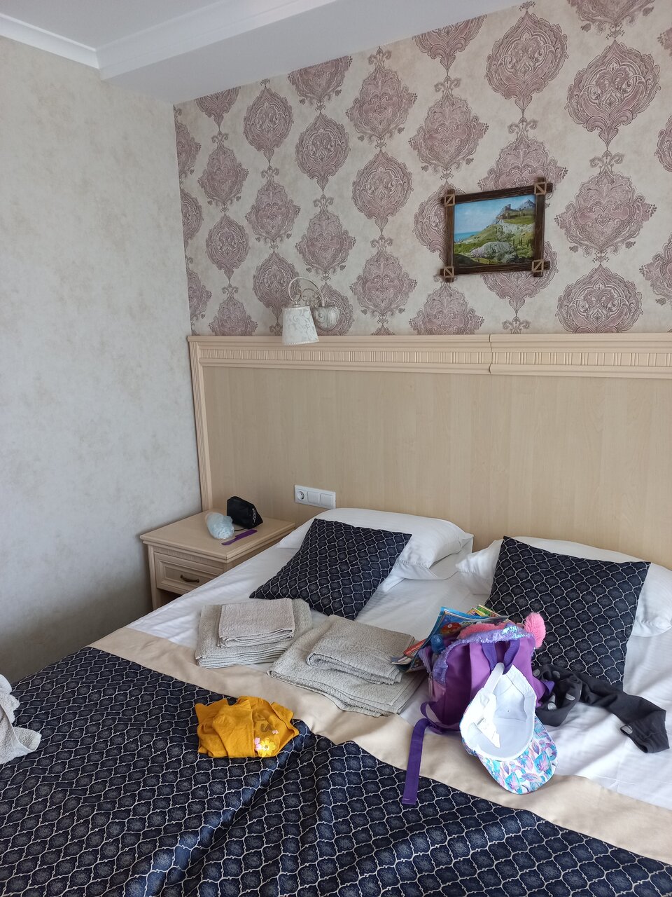 Находимся сейчас в этом отеле ,друзья все супер.Номера новые,интерьер на уровне,все очень чисто,фото совпадает с оригиналом.Кормят очень хорошо,здесь пятый день,неразумно не повторилось меню завтра и ужина.Уборка номера ,на отлично.Персонал приветливый и очень радужный.До моря 15 минут.Рекомендую для посещения,даже с малышами,потому что есть детское меню.Хорошего отдыха