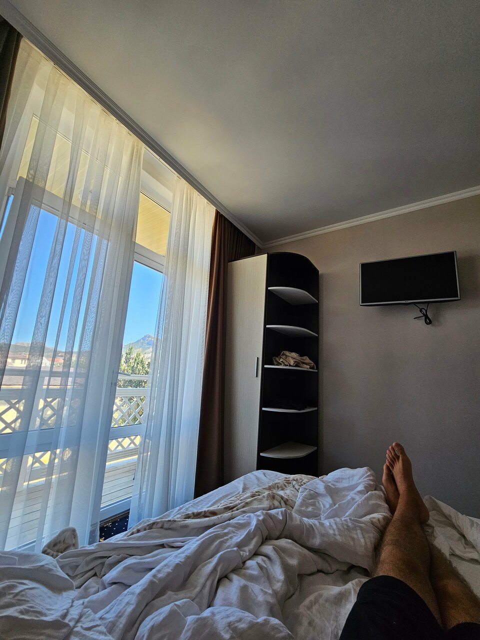 Райский уголок в аду!!! Судак разочаровал своей убитой неосвященной набережной и грязнейшими улицами!!! Губернатора на мыло!!!!! Про отель. Ребята! Спасибо огромное за ваши стены! Вы очень круто все сделали: роскошные шторы! Добротные двери! Сплит система ( ни какойнибудь задрипаный кондей с одним режимом). Все чисто, дорого, богато, со вкусом!!! Рекомендую!!! Ценник мега адекватный! Подход радушный и заботливый! В каждом номере выход на болкончик! Завтраки по моему даже есть. Короче выбирайте их!!!!!