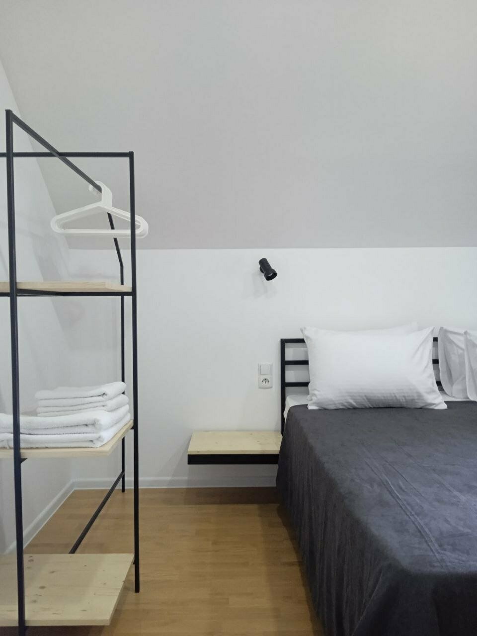 Двухместный номер с одной двухспальной кровать и собственным душем .