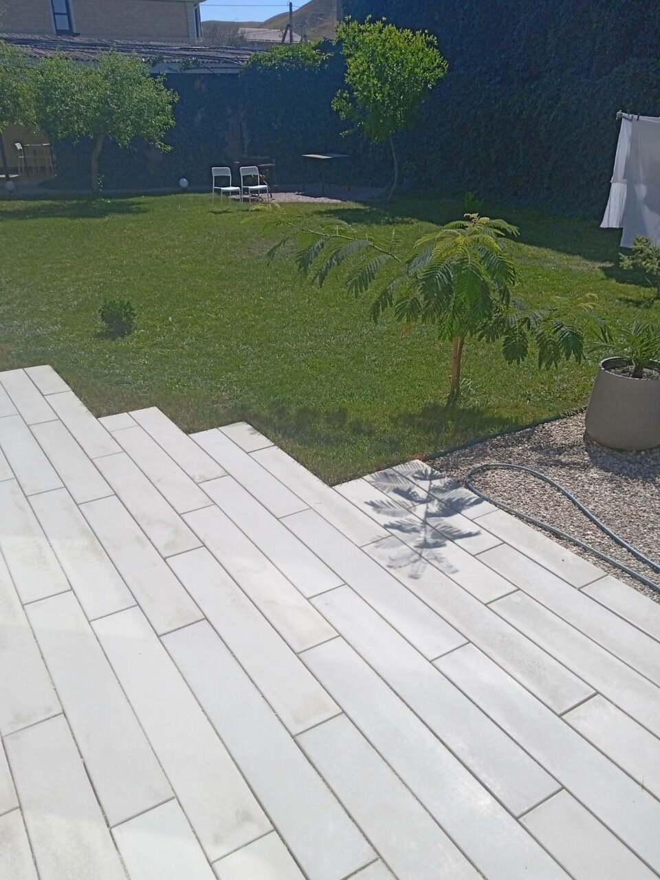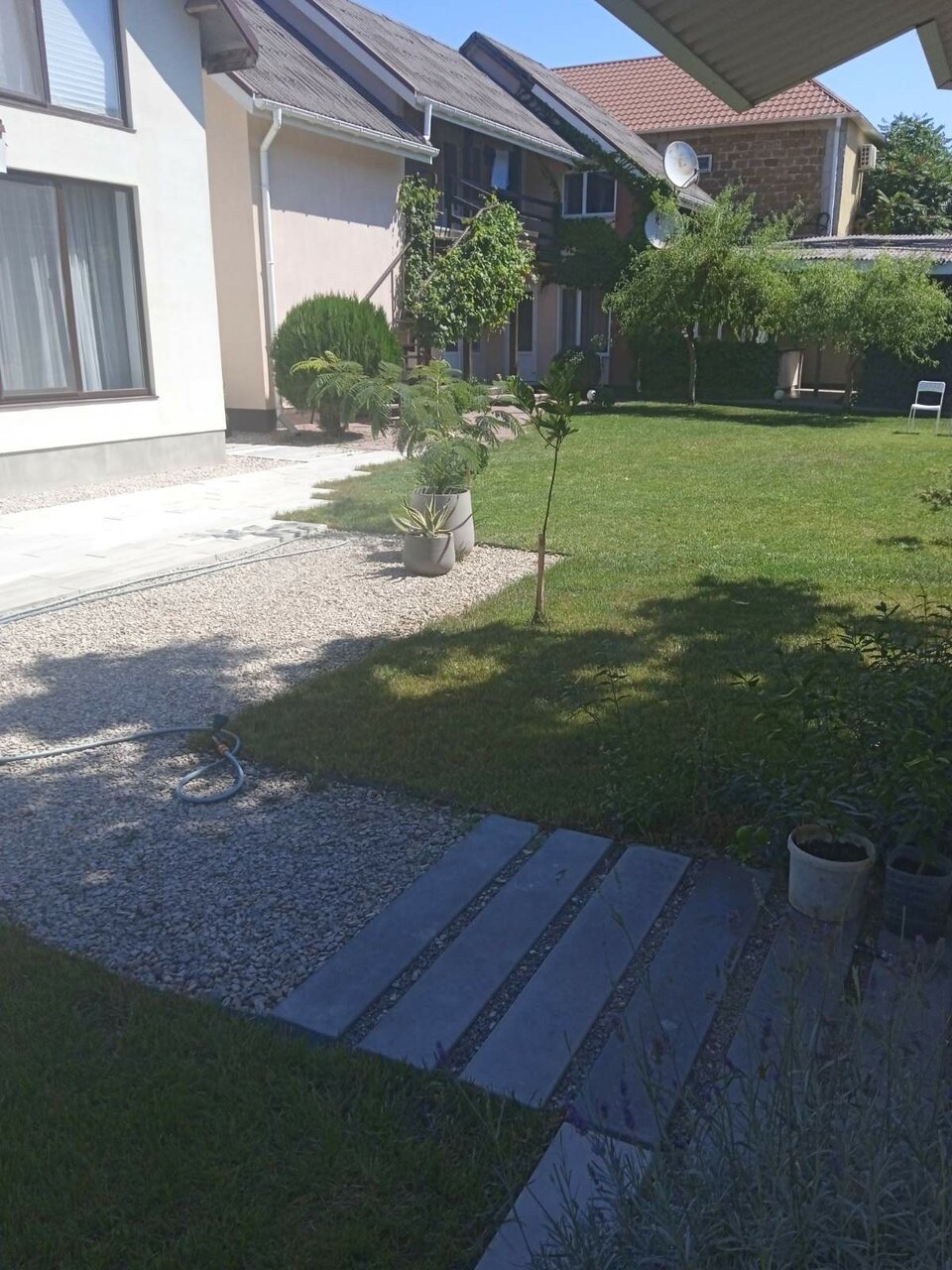- Ухоженный двор с зеленью.