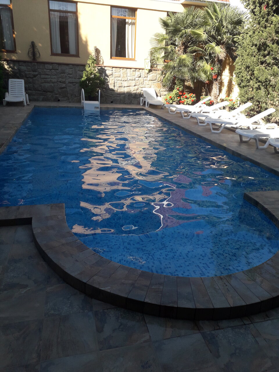 Очень понравилось,уютно.везде на участке зелень,всё ухожено,в бассейне прозрачная водичка за всё время пребывания.