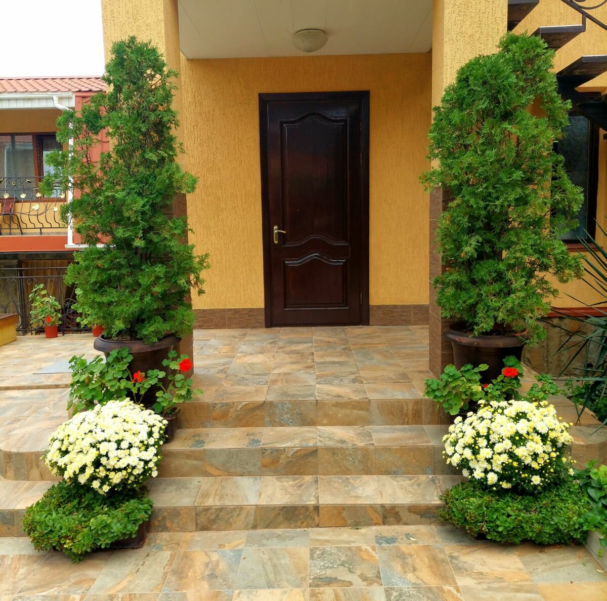 - Уютная и ухоженная территория с зеленью.