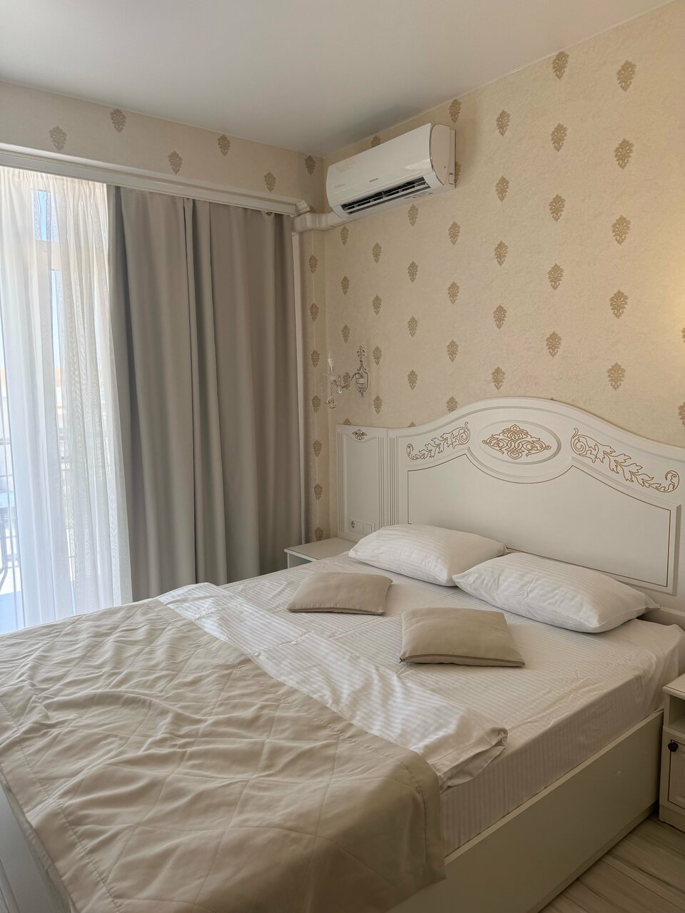 Повелись на хвалебные отзывы, пребыванием разочарованы от слова совсем. Снимали двухкомнатный номер на 6 ночей. Из заявленной уборки по требованию у нас ни разу не прибрали. Хотя просили дважды, реакции ноль. Если вы себя позиционируете как отель, почему нет влажной уборки и смены полотенец? Если все-таки уборка не предусмотрена, значит в номере должны быть средства для самостоятельной уборки — ни губки, ни тряпки с ведром не было. В номере не предусмотрена полка для обуви, обувь просто некуда поставить, из-за этого грязь растаскивается по номеру, который не убирается. До моря далеко, есть услуга гольфкара до 20-00. Единственный приятный бонус — бассейн на крыше. Больше не вернемся, думаю за такую цену есть варианты намного лучше.