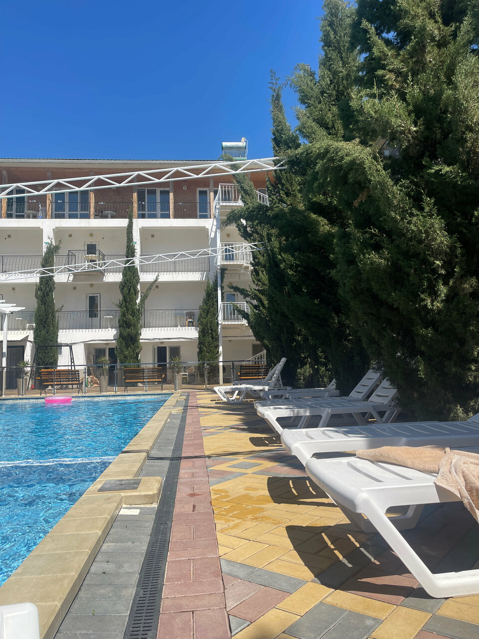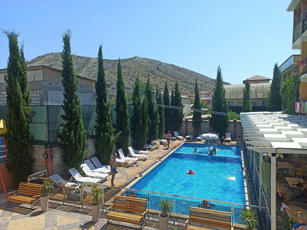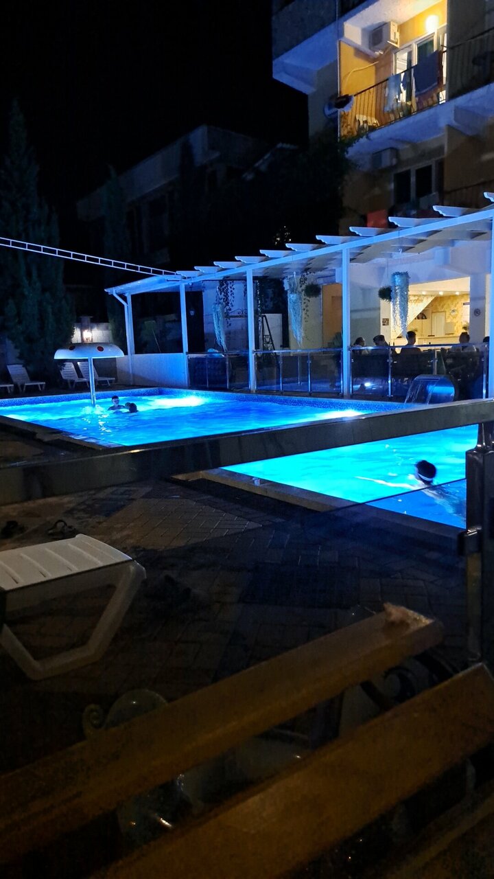 Персонал очень вежливый, дружелюбный. До моря минут 5-7 пешком. Чистый, теплый бассейн во дворе, огороженный от детей. Номера не большие, но уютные.Есть развлекухи для детей, большой двор с качелями, горками, отдельное помещение с игрушками. Всё что нужно для хоршего отдыха