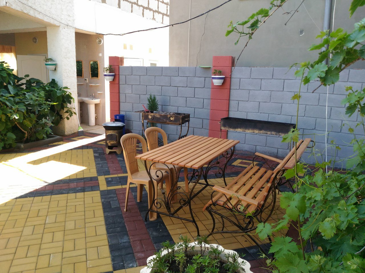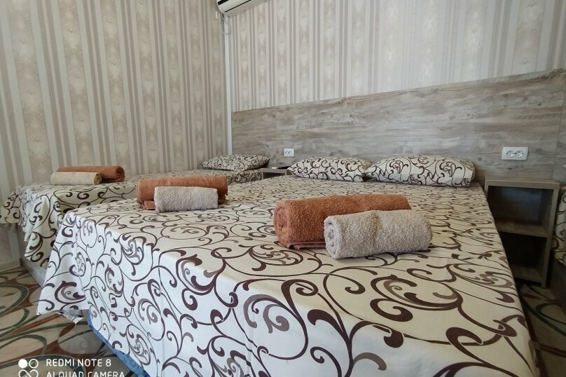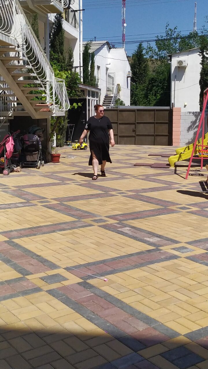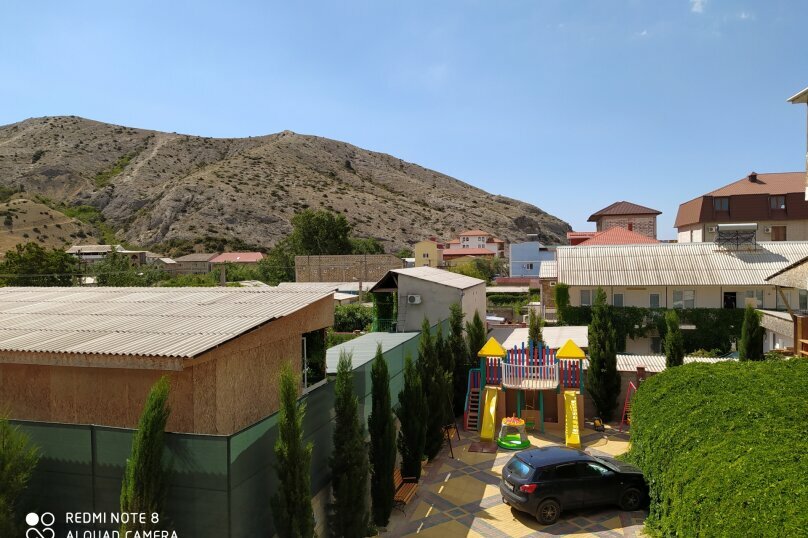 Отдых в июне 2018. Закрытый мощеный двор, зелень, качели, лавочки, мангал, летняя кухня (2 плиты, посуда, можно самим готовить), для детей рай — песочница, игровая комната, много сверстников, очень уютно и по-домашнему. Номера с кондиционером, холодильником, TV, балконом, хороший WiFi, бесплатная стоянка. До моря 5 минут неспешной ходьбы. В шаговой доступности магазин, шашлыки, овощи-фрукты и прочие южные прелести. Вид на гору Алчак-кая. Толерантные и ответственные хозяева. Всем рекомендую.