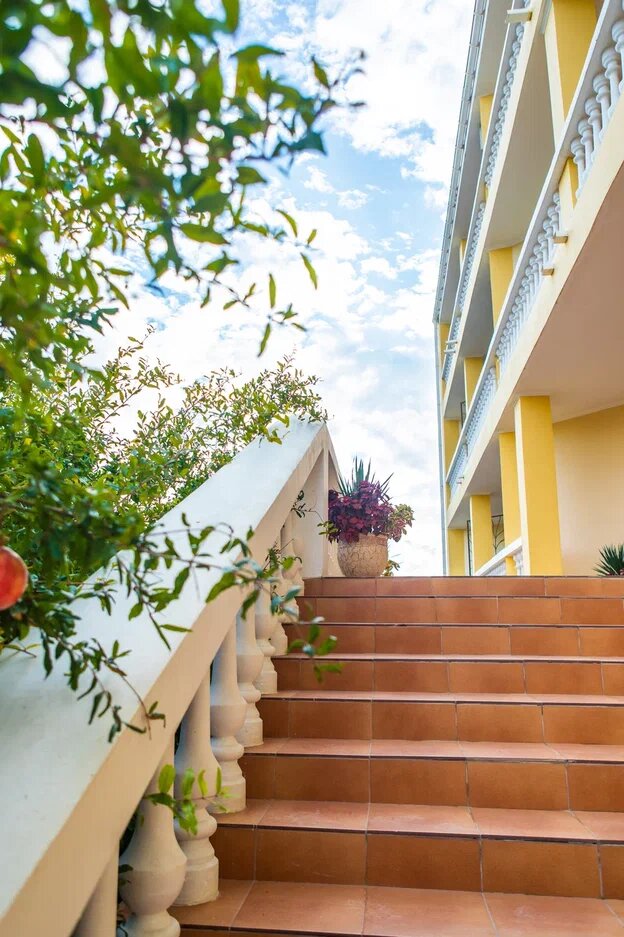 Прекрасная гостиница. Отдыхали там дважды, все рчен понравилось. Есть номера с кухней, есть двух комнатные. В номерах все необходимое. На первом этаже кафе, цены умеренные, готовят вкусно. Так же есть спа и спортзал, но там мы не были. Открытый бассейн, разделен на две части, глубокую и помельче, для детей. Есть парковка. Уборка и смена полотенец ежедневно. До моря меньше 5минут. У нас был номер с огромным балконом и видом на море и горы. Прекрасный отдель!