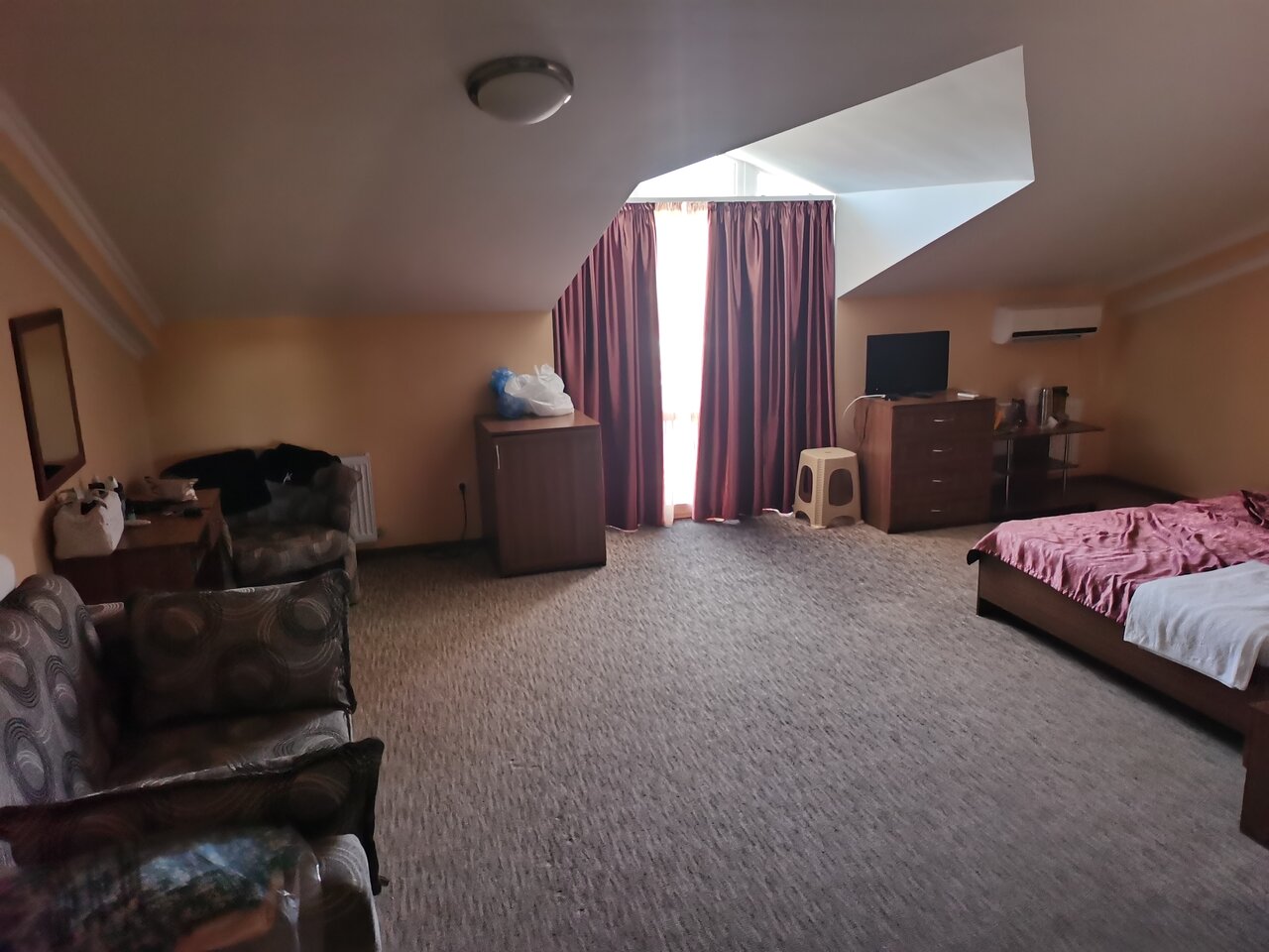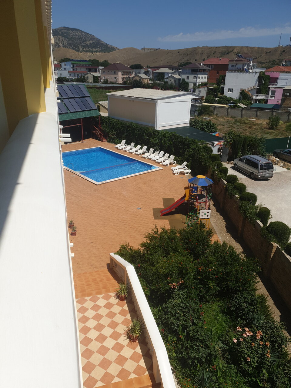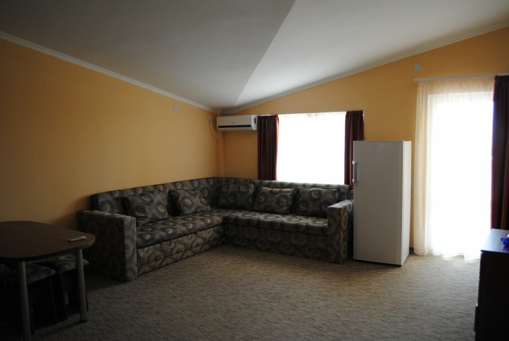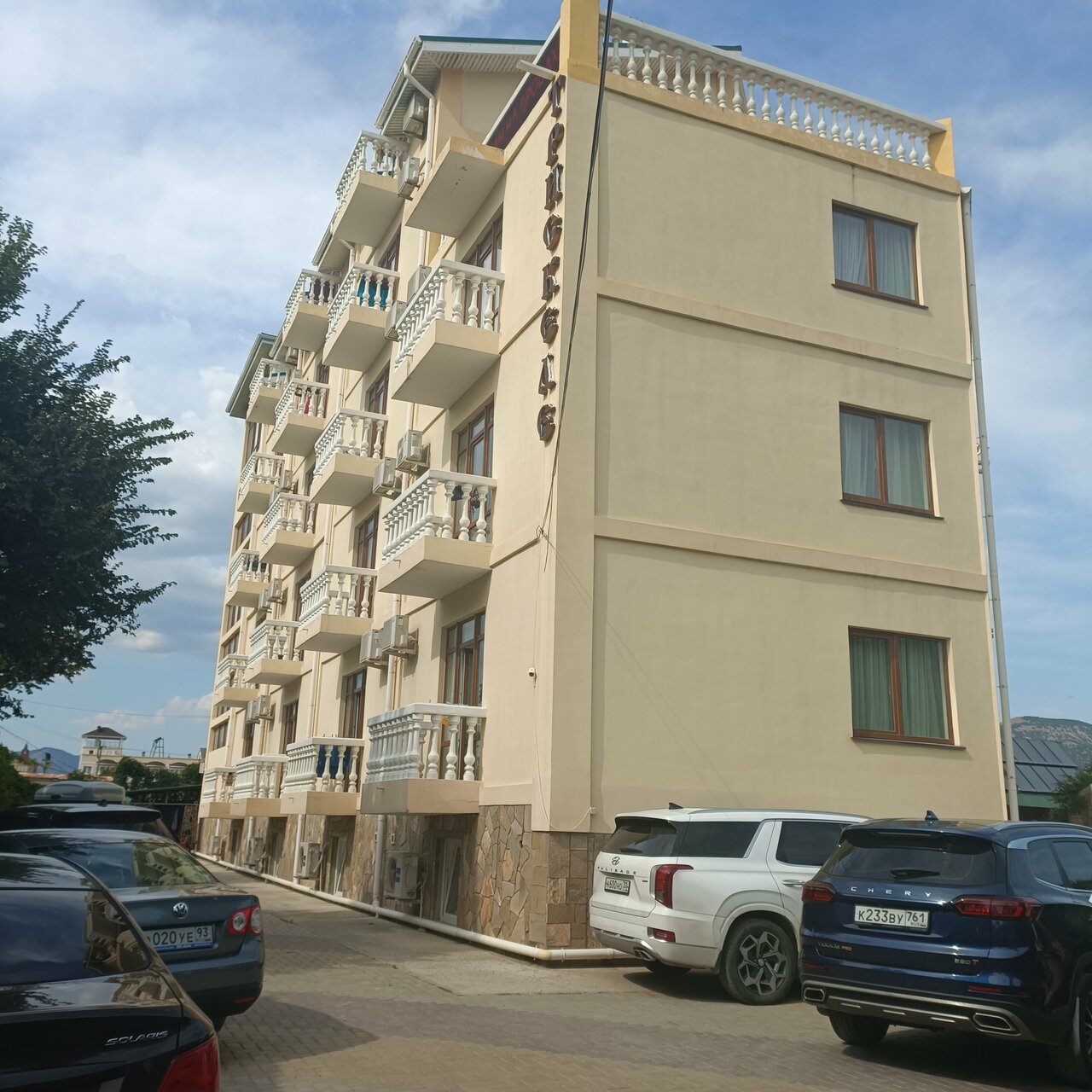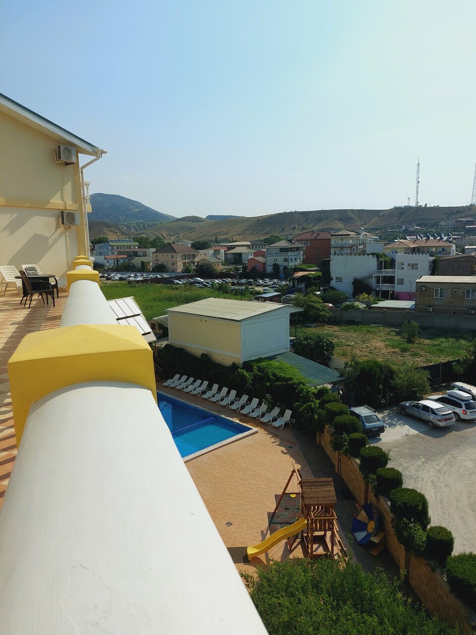 Отдыхали с 10-12.09.21 в реальности выглядит лучше, чем на фото! Что большая редкость. Очень довольны, что попали сюда! Случайно попали, так как приехали по факту! И слава Богу, что именно сюда попали, классные просторные номера, для двух взрослых и детей супер, огромный диван и большая кровать! Диван свежий! Ни пятнышка, Столик письменный, вся посуда есть! Все чисто, ванная чистейшая, без всякой плесени, посторонних запахов, и т. .д убирались каждый день! В номере тапочки, халаты, гели , шампуни. Диван для детей сразу расстелили! Девочки уборщицы молодцы! Номер кстати Разделен на зоны, родительская кровать отделена от дивана. Приветливый ресепшн, от моря 7 мин. идешь по ценр. Улице, рядом несколько столовых , аквапарк. Жили на 4 этаже вид шикарный с балкона номера и с общей террасы! На терассе тоже можно позагорать, стоят лежаки! Шумоизоляция шикарная, не слышно ничего!