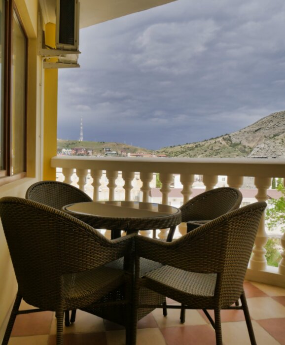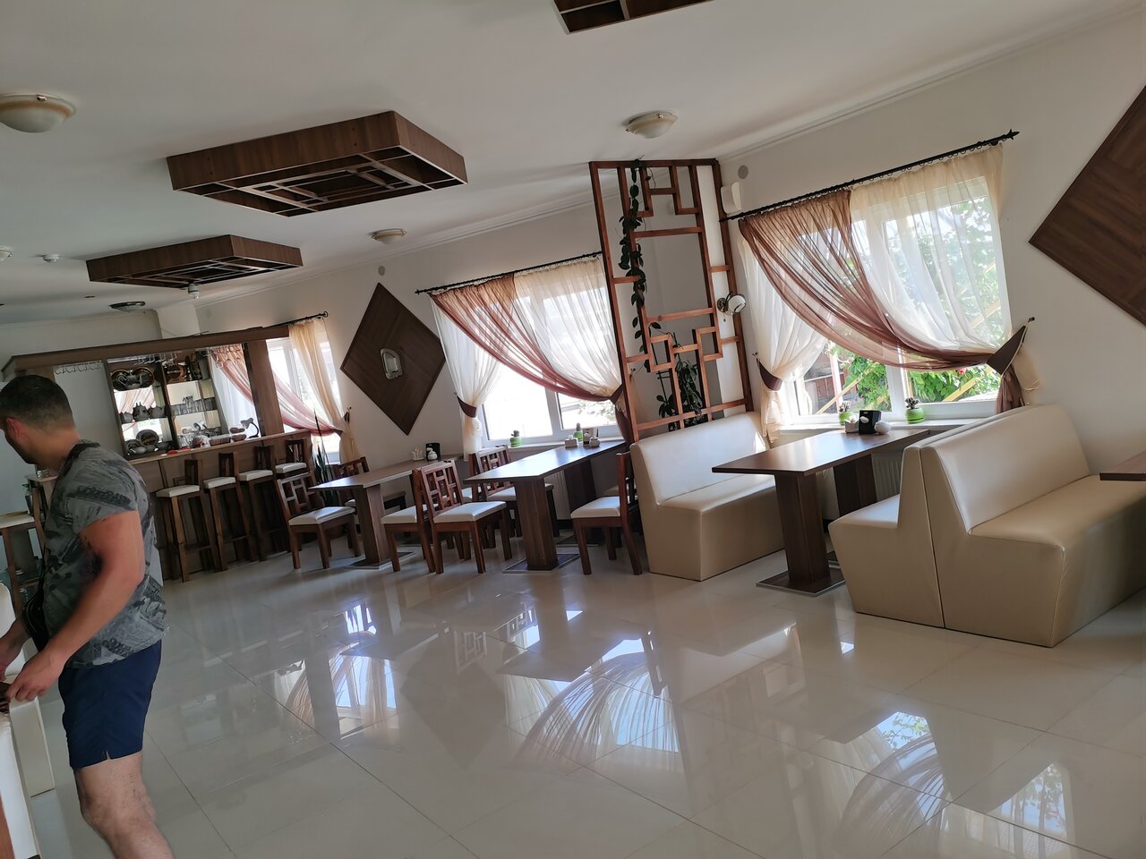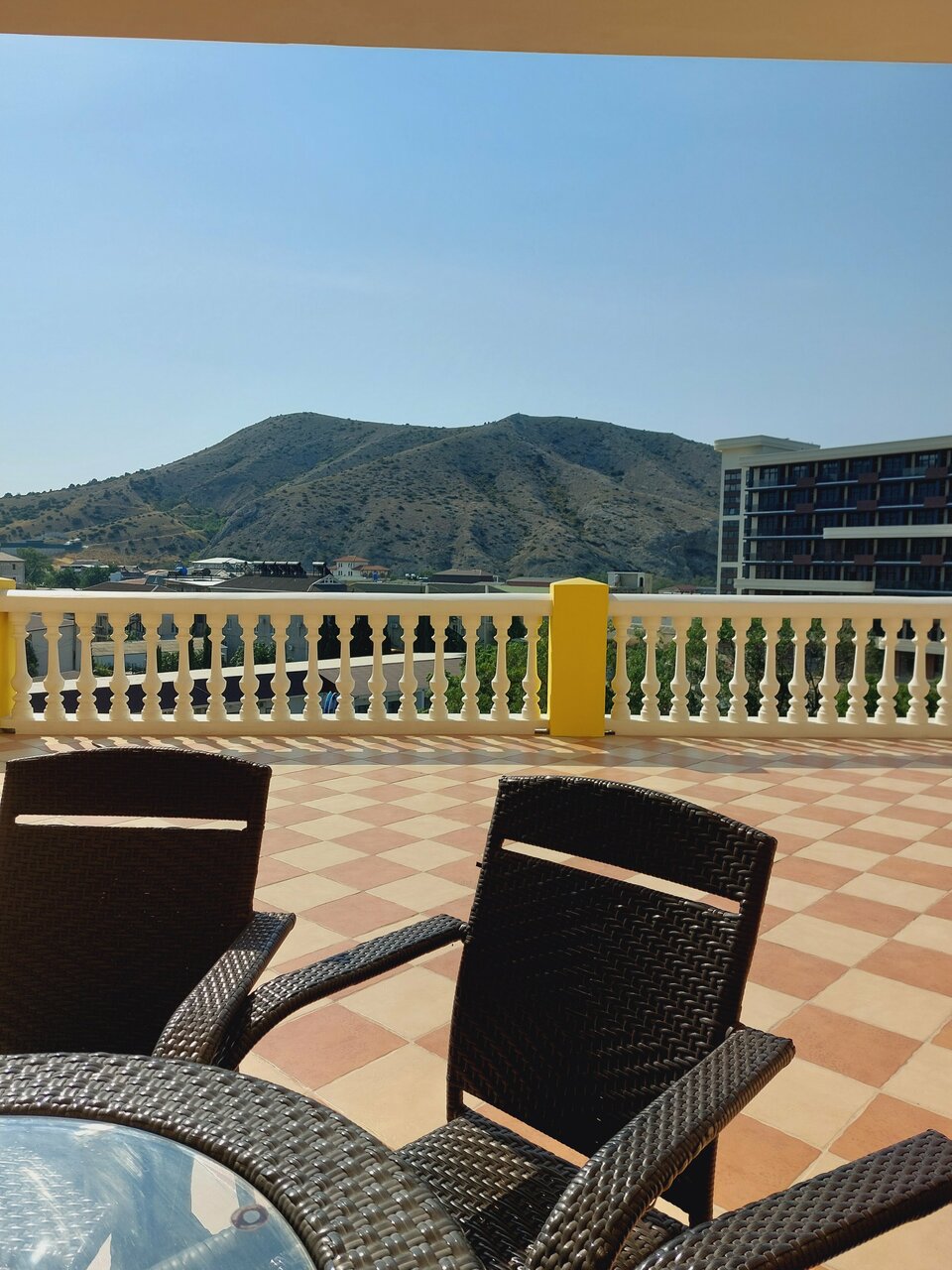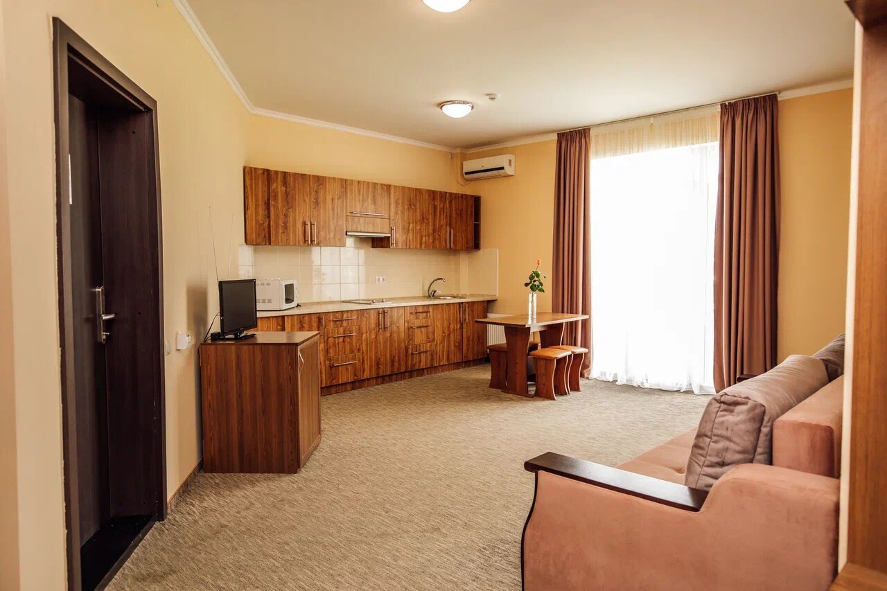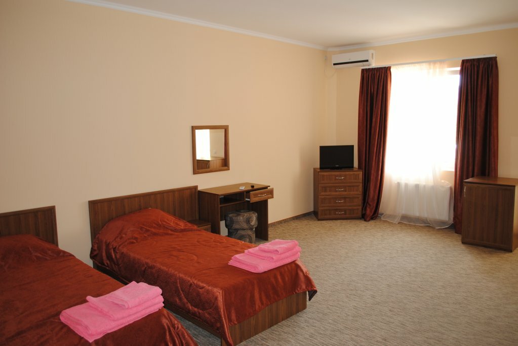 Отдыхали с 10-12.09.21 в реальности выглядит лучше, чем на фото! Что большая редкость. Очень довольны, что попали сюда! Случайно попали, так как приехали по факту! И слава Богу, что именно сюда попали, классные просторные номера, для двух взрослых и детей супер, огромный диван и большая кровать! Диван свежий! Ни пятнышка, Столик письменный, вся посуда есть! Все чисто, ванная чистейшая, без всякой плесени, посторонних запахов, и т. .д убирались каждый день! В номере тапочки, халаты, гели , шампуни. Диван для детей сразу расстелили! Девочки уборщицы молодцы! Номер кстати Разделен на зоны, родительская кровать отделена от дивана. Приветливый ресепшн, от моря 7 мин. идешь по ценр. Улице, рядом несколько столовых , аквапарк. Жили на 4 этаже вид шикарный с балкона номера и с общей террасы! На терассе тоже можно позагорать, стоят лежаки! Шумоизоляция шикарная, не слышно ничего!