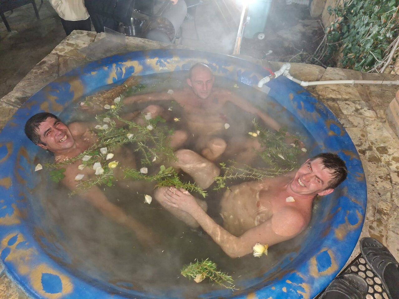 Купание в этой горячей купели, настоянной на травах. под открытым небом очень полезно для здоровья, способствует омоложению и позволит вам 'переродиться заново'
