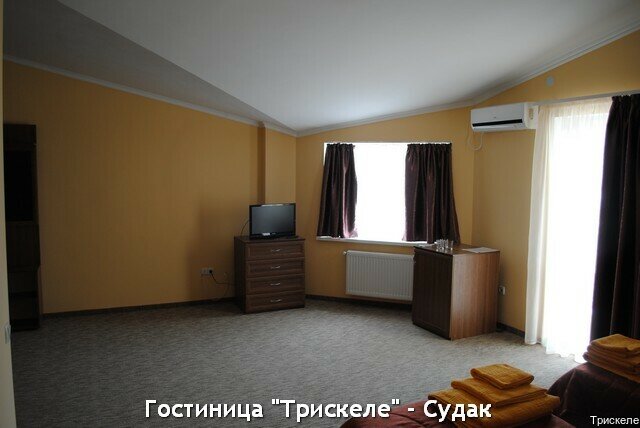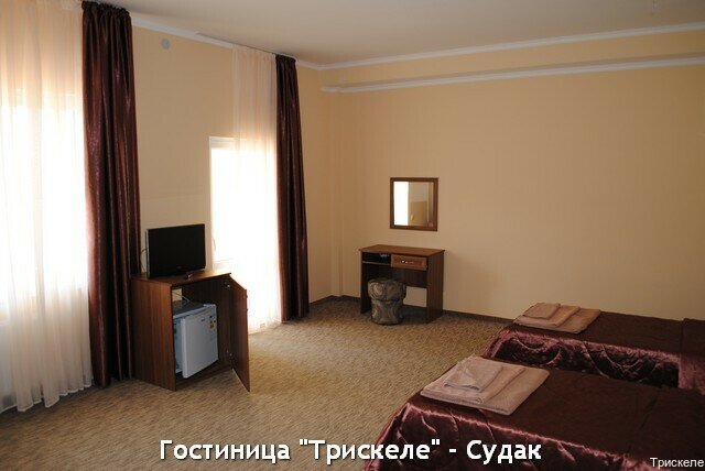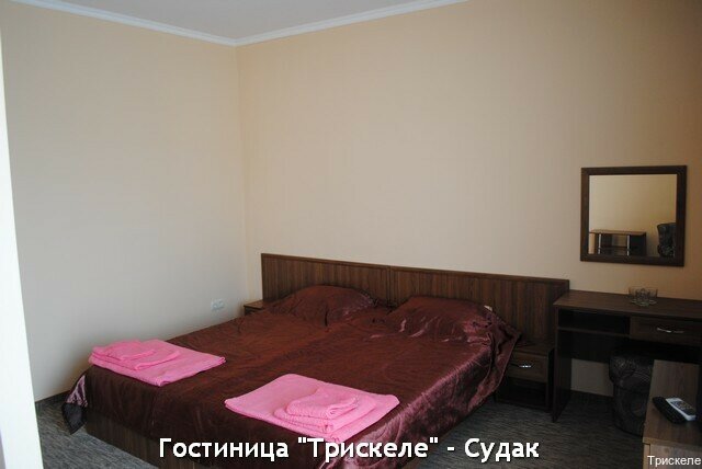 Гостиница «Трискеле» расположена в Судаке по адресу: ул. Юбилейная, 3. Работает круглосуточно, предлагая комфортное размещение в номерах с кондиционером, Wi-Fi, телевизором и звукоизоляцией.