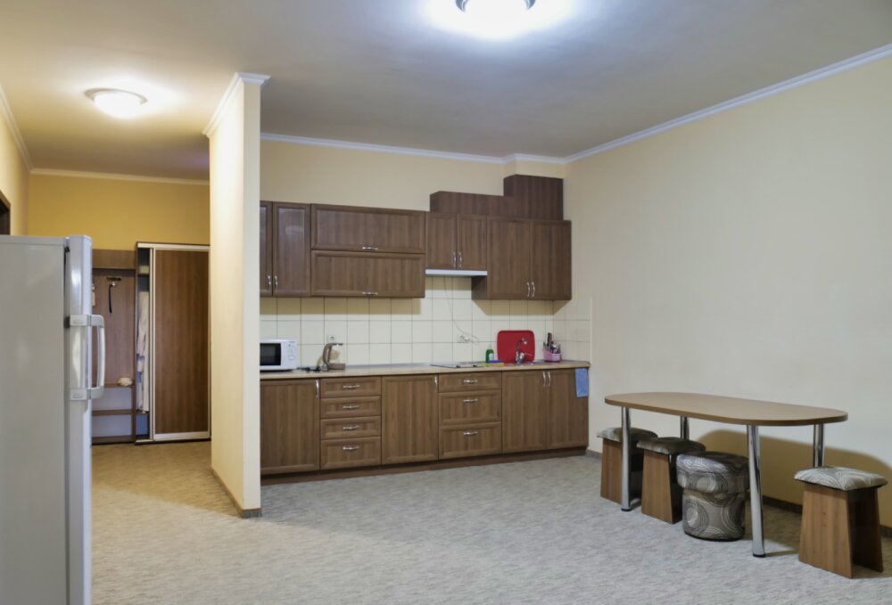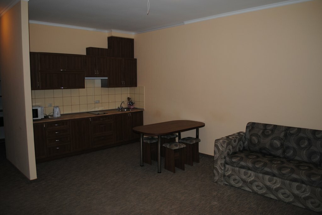 Номер категории двухкомнатный с кухней улучшенный отличается простором. Состоит из прихожей, двух проходных комнат, одна из которых совмещается с кухней. Есть возможность приготовить своими руками завтрак, а также накормить всю семью домашними, св...