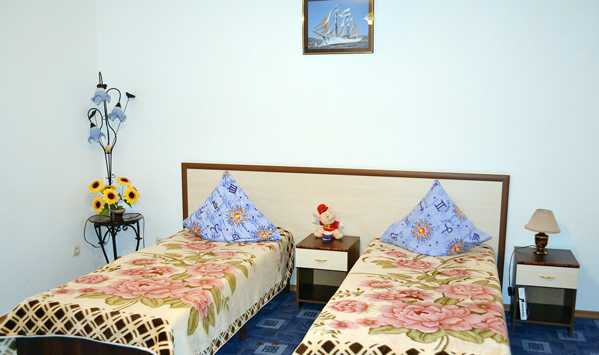 Наша любимая гостиница в Судаке! Действительно уютные чистые номера с великолепным видом на Сахарную Головку! Хороший бассейн с детской зоной, живой уголок с попугаями (что очень нравится детям), вкусный завтрак включён в стоимость проживания. Очень вежливый персонал! До набережной Судака идти минут 15, в 10-ти минутах ходьбы — Генуэзская крепость и Музей древностей.