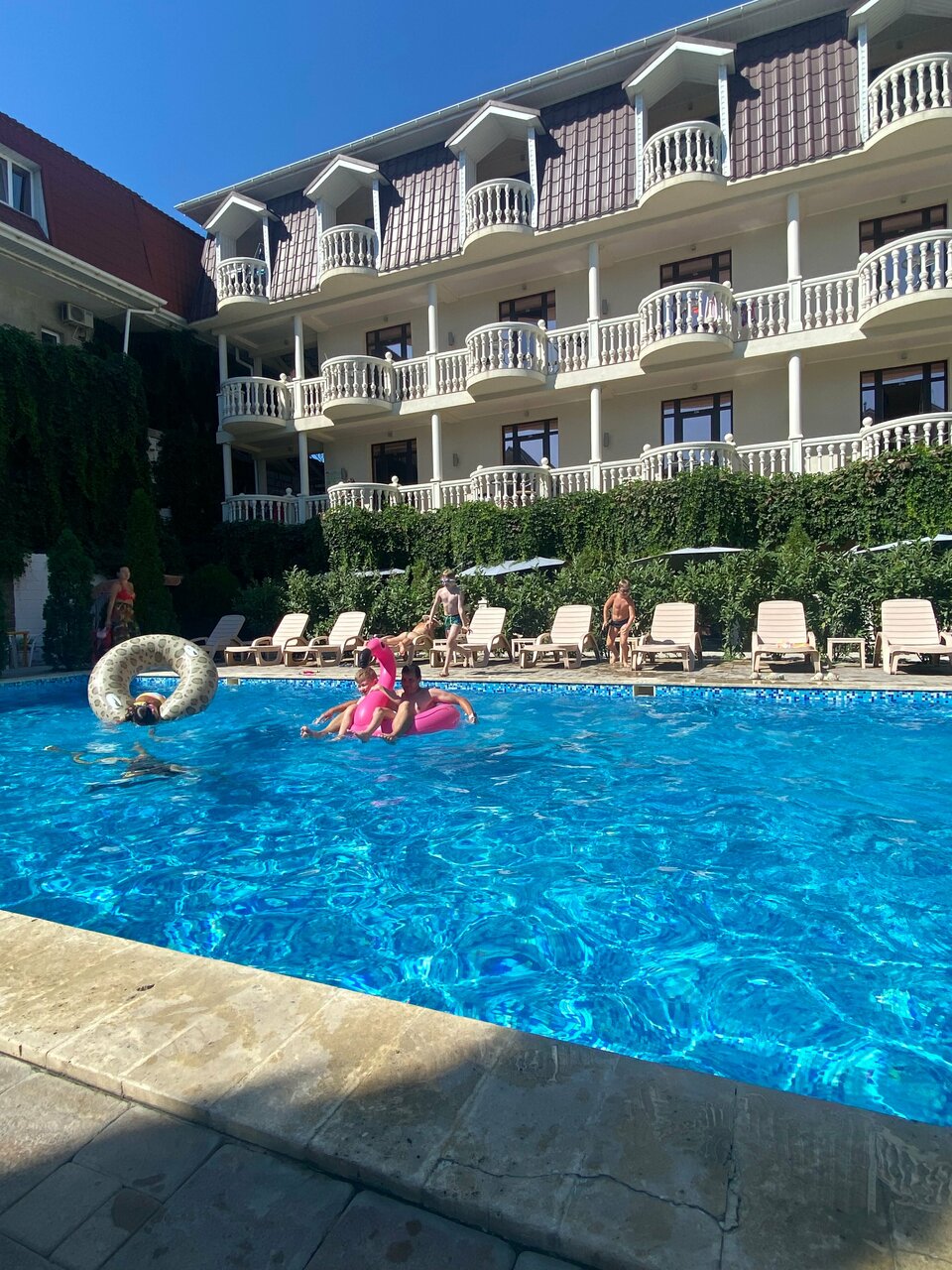 Отдыхали в августе с 2 детьми, 4 и 12 лет. Отель шикарный, вся территория утопает в зелени, отличный бассейн у которого рядом лежат круги, матрас, нарукавники для деток. Номер потрясающий, все очень чисто и аккуратно. Прекрасные ужины, которые удовлетворят даже самых маленьких приверед. Персонал супер приветливый и отзывчивый, прийду на помощь в любом вопросе. Очень удачное расположение, до моря не далеко, есть своя стоянка с видеонаблюдением. Утдых был отличным, обязательно вернемся еще. Однозначно рекомендую.