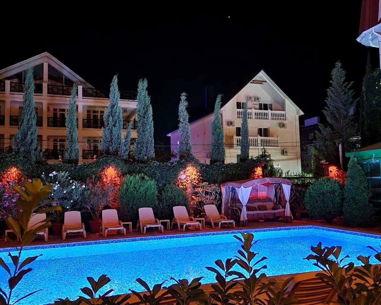 Отдыхали в конце сентября . От бронирования до конца отдыха помогали по всем вопросам . Идеальное место для отдыха с детьми ,так и влюбленным парам . Территория не большая,но шикарное зонирование густой зеленью создает места для уединения. Бассейн,лежаки,полотенца в круглосуточном пользовании . Обслуживающий персонал очень доброжелательный и не навязчивый. Питание на высшем уровне ! Можете не искать лучше,чем при отеле ,не будет . Для нас важна шумоизоляция в номерах . Тихо ! Спасибо большое Елене и Алене ,так держать . Отдельное спасибо Валерии . Профессионал и просто интересный в общении человек .