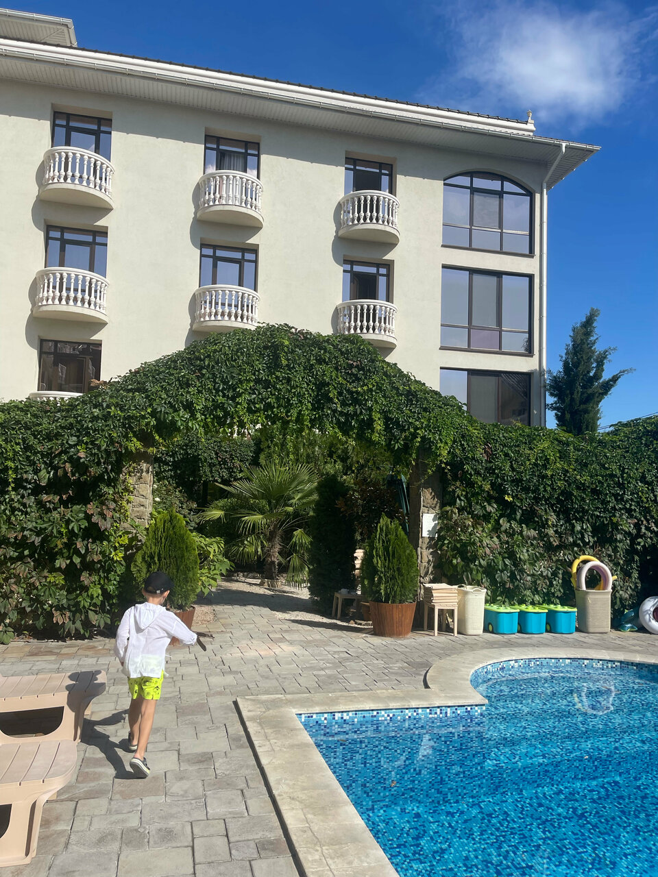 Отличный отель, из которого не хочется уезжать.Всё есть для комфортного отдыха,особенно с детьми; красивый,утопающий в зелени,дворик,бассейн с чистой водой и купальными принадлежностями,игровая зона,своя парковка,Wi-Fi без сбоев,уютные номера с миникухней.Всё сделано со вкусом и продумано до мелочей.Великолепное питание, дружелюбный персонал.Везде порядок и красота.Огромное спасибо руководству,обязательно приедем вновь.Всем рекомендуем.
