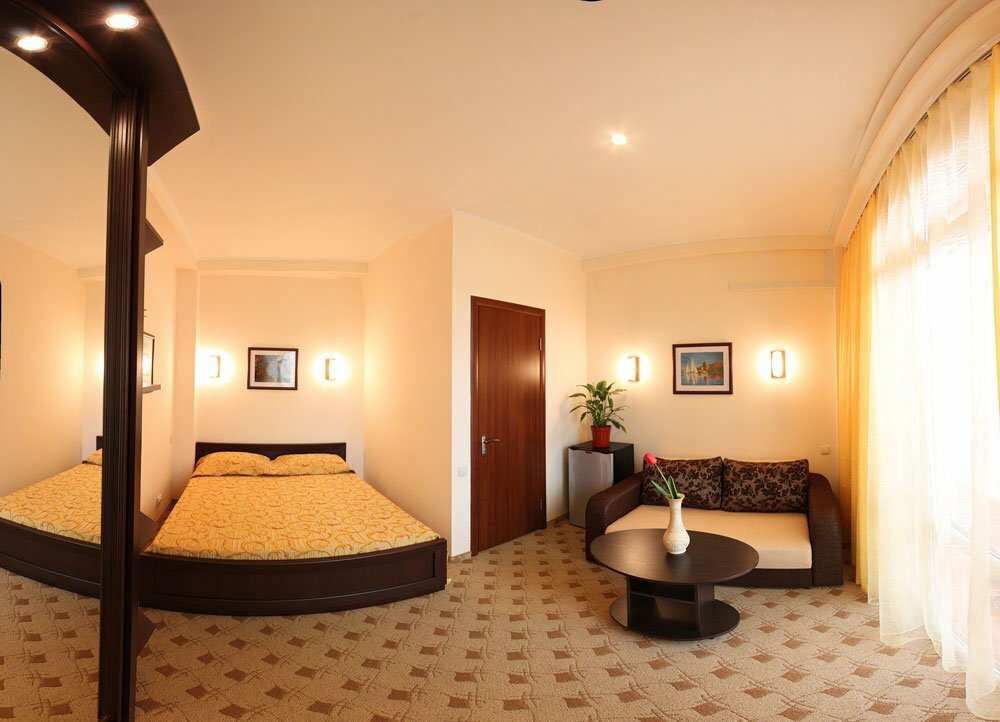 Потрясающий отель. Были с семьей втроем,в номере с панорамными окнами,очень уютно. В душе есть все необходимое. В номере есть чайник,чашки,бокалы. Во дворе очень красиво,зелено. Есть большой бассейн,полотенца у бассейна. В отеле завтраки очень вкусные,по системе шведский стол,также есть и ужины,все ну очень сытно и вкусно. Мне кажется,что в судаке это лучший отель. И да,есть своя парковка,что немаловажно в Крыму. Управляющая Валерия потрясающая,решит любой ваш вопрос за минуту. Мы остались в полном восторге,приедем еще точно. ВАЛЕРИЯ, спасибо вам за невероятный отдых!