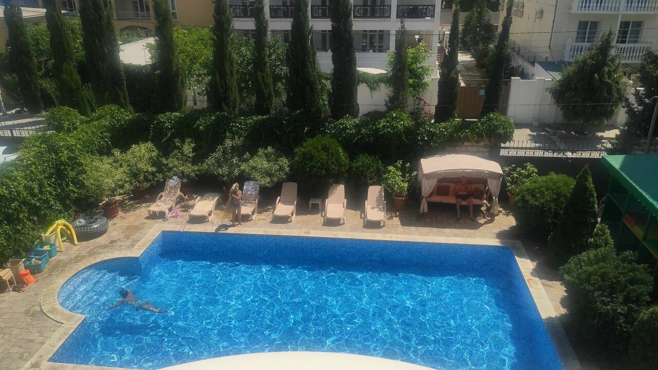 Отдыхали в этом отеле в августе. Небольшая уютная территория, много зелёных насаждений, бассейн с чистой водой, вкусные и сытные завтраки и ужины-всё располагает к прекрасному отдыху. На обед можно заказать вкусную пиццу. В номерах чисто и уютно. У бассейна много надувных матрасов и кругов для детей. Особое внимание привлекает дизайн интерьере отеля: картины с фотографиями известных актёров. С крыши, оборудованной мягкими креслами и тренажёрами, открывается красивый вид на Судак. Особая благодарность Валерии за внимание к каждому гостю! Спасибо за отличный отдых!