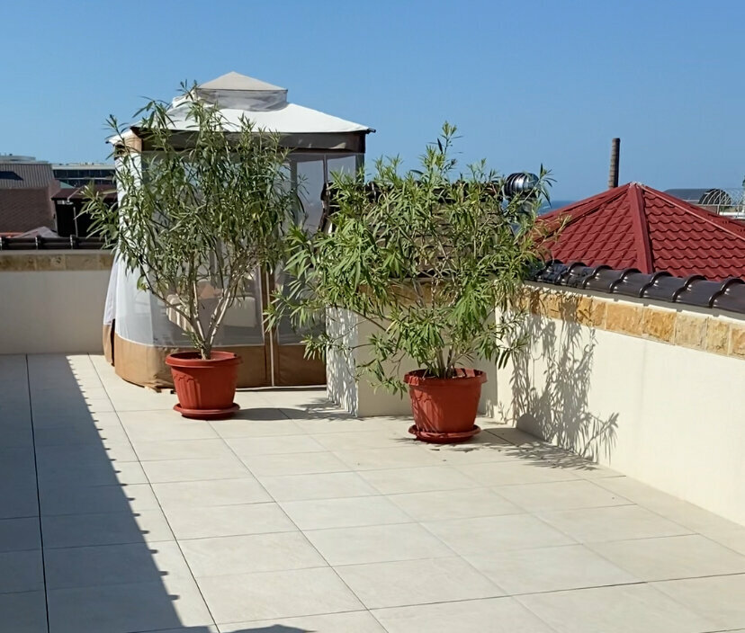 - Крыша с тренажёрами и зоной отдыха.