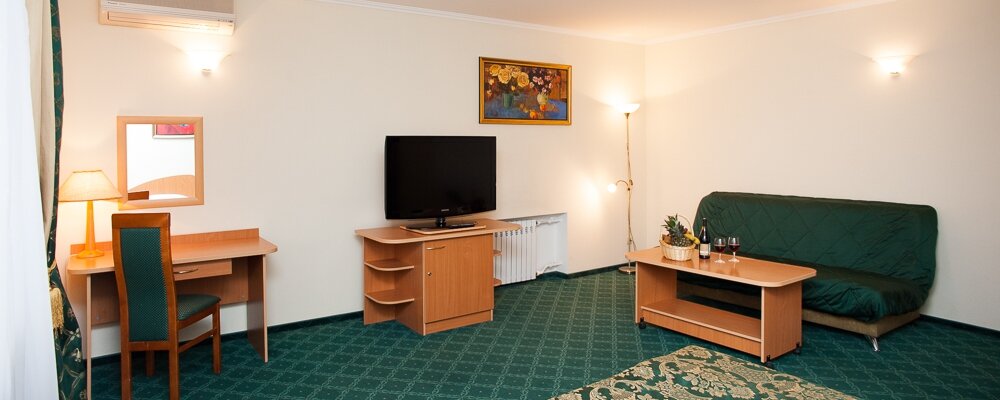 Отель на левом берегу речки Рожайки. Лесная территория, довольно рельефная. Несколько корпусов. Номера просторные с душем. Из развлечений: боулинг, бассейн и сауна, уличные спортивные площадки (включая 1/2 футбольного поля с искусственным газоном), тюбинговая горка. На берегу много беседок с мангалами, которые можно арендовать. Гибкая система питания (от завтраков, до полного пансиона). Есть еще три кафе-ресторана в разных корпусах. Работают исходя из загрузки отеля. Из минусов: отель уже подустал. Перила на балконе проржавели насквозь, запах в номерах и ванных комнатах.