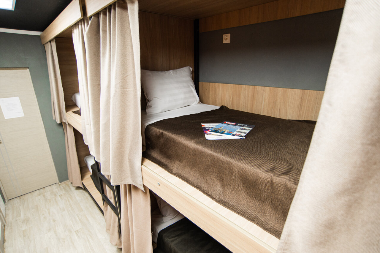 ‘+’ хостел хороший, номера чистые, туалет убирают. Есть Wi-Fi. Цена 450 рублей за сутки всего. Спокойный тихий район. Общительный охранник ’-‘ идёт ремонт первого, второго этажа и облагораживание территории. На кухне нет столов и стульев. В номерах нету штор(или хотя бы жалюзи) С первого визита изменилось в лучшую сторону. Всегда с коллегами приезжали сюда, чтобы выспаться перед авиарейсом. Но разочарован последним визитом в ваш хостел, где нам сходу нагрубил админстратор Инна, ссылаясь на то что пришли с перегаром. Извините конечно, но я снял стресс после вахты, пропустив пару бокалов пива, я ведь не в хостеле распивал. Не буянил, пришел, дал паспорт в руки как обычно и тут началось… Никогда такого не было.