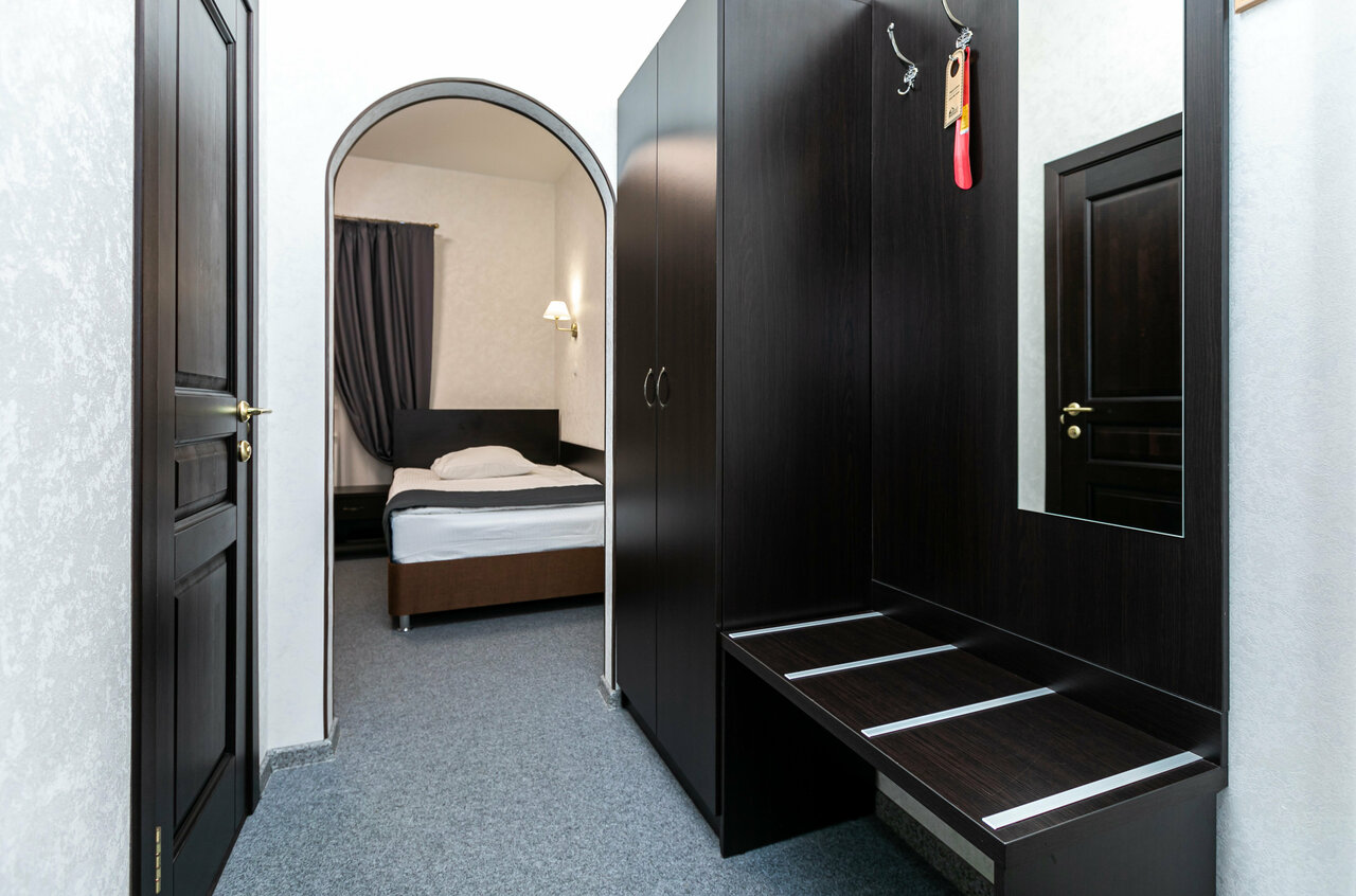 Один минус расположена во дворах, плохой подъезд к гостинице, парковочных мест вообще нет, людям с инвалидностью трудно попадать в гостиницу, лифт между этажей на коляске без посторонней помощи не попАСТь….