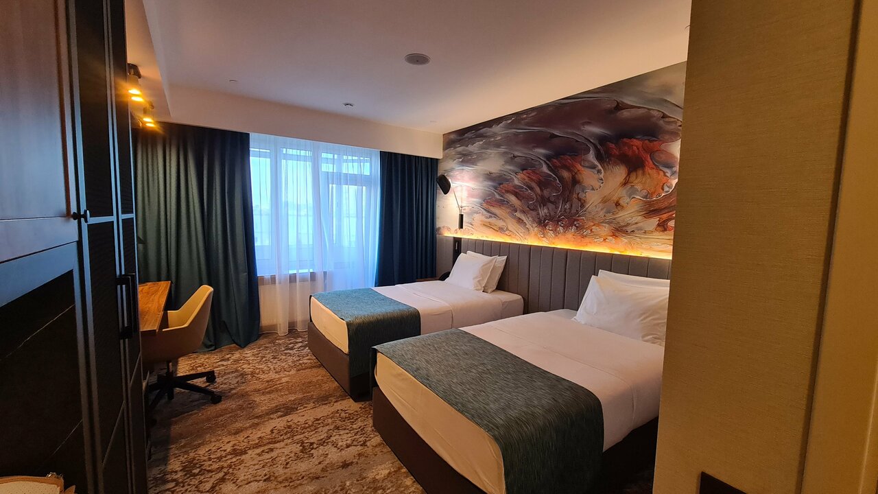 Хороший отель, тихо, мягкие кровати, лёгкие одеяла, две подушечки, даже не хотелось вылазить из кровати, мини бар скучный и в нём особо нет холода, на балконе холоднее, на ресепшене милые девушки и бесплатная печенюшка при заселении и самое главное тёплая) убирают номера быстро и хорошо, всё понравилось очень, при возможности вернусь сюда же